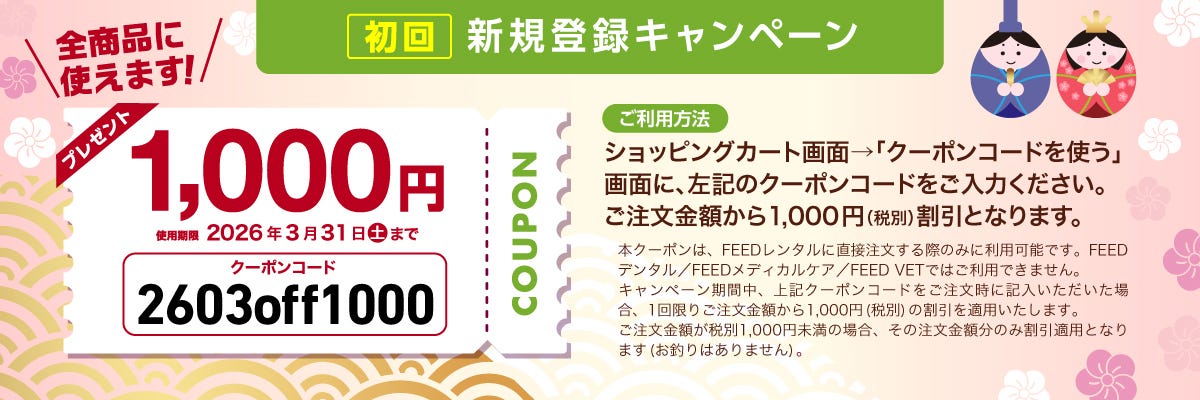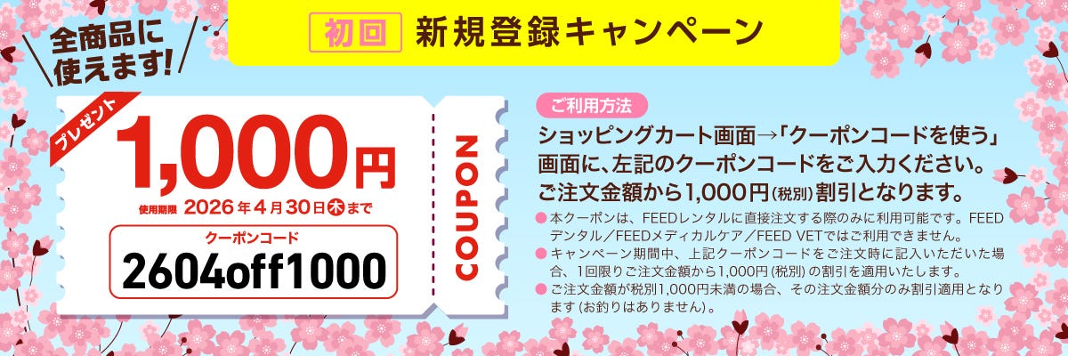 ※FEEDレンタルは、FEEDデンタル・FEEDメディカルケア・FEED VETとログインIDが異なるため新規登録が必要です。