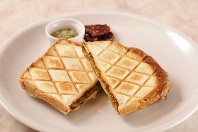 プレーンプレートではソーセージや目玉焼き、焼き野菜、ハンバーグ…ネットプレートではホットサンド、アップルパイ。