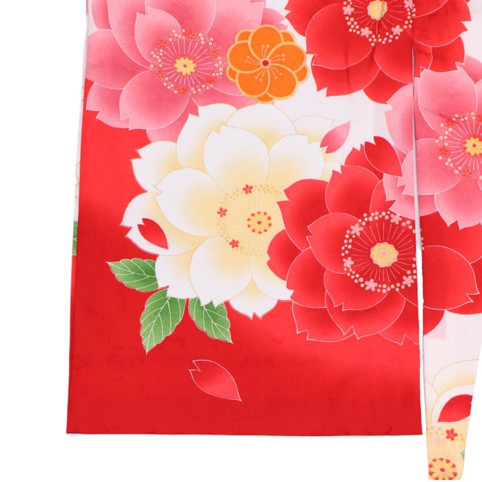 女の子 お宮参り 産着レンタル6点フルセット 大桜柄 赤