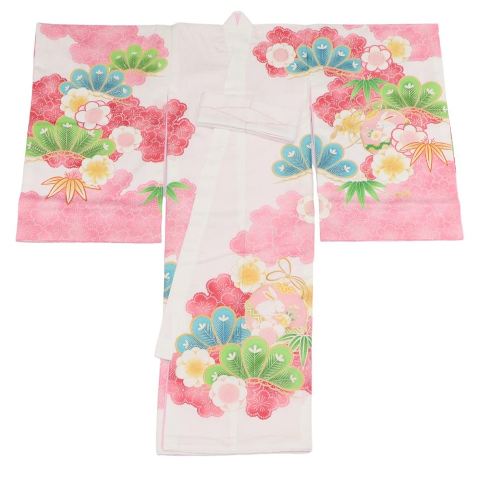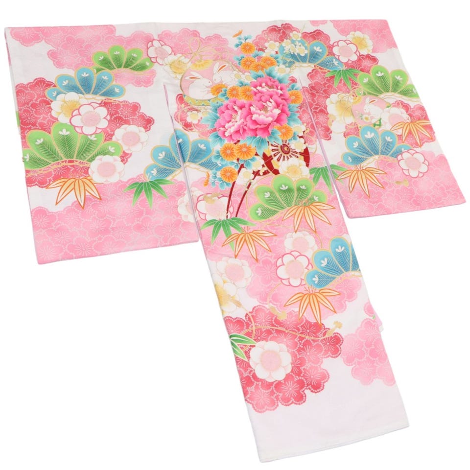 女の子 お宮参り 産着レンタル6点フルセット 花車にうさぎ 白