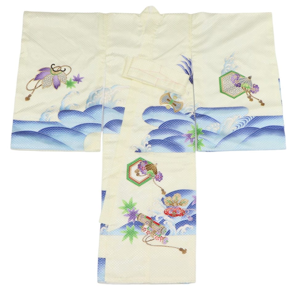 着物・襦袢:ポリエステル100%、帽子・よだれかけ:表地/絹100%・裏地/アセテート100%
