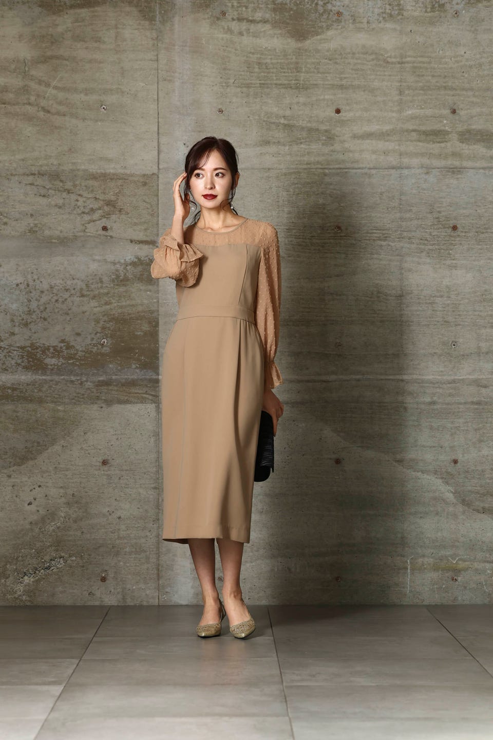 フロッキー加工が施されたドットチュールが素敵な一着。
