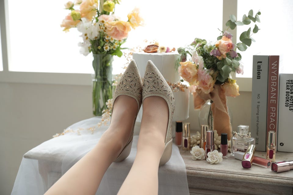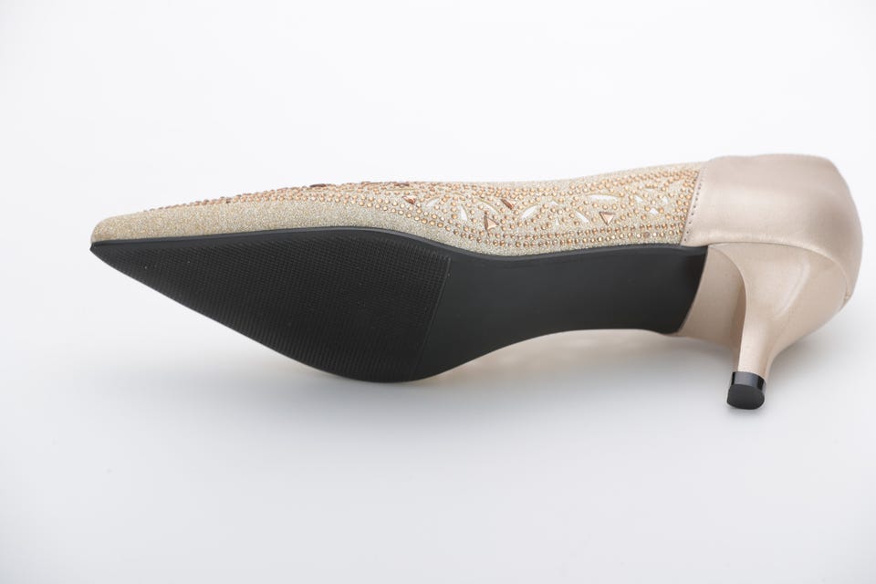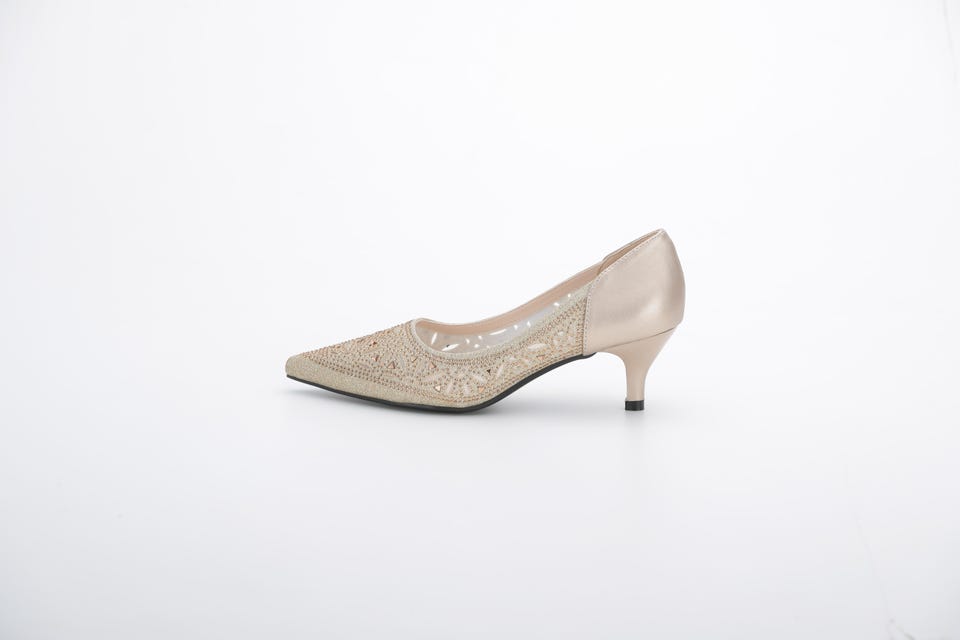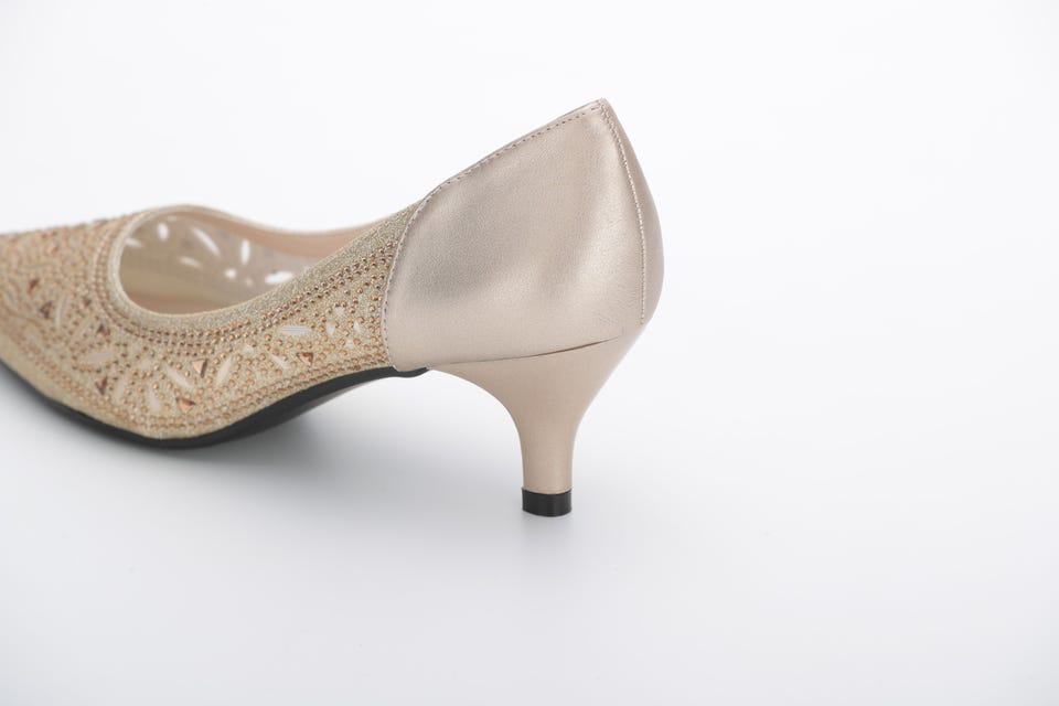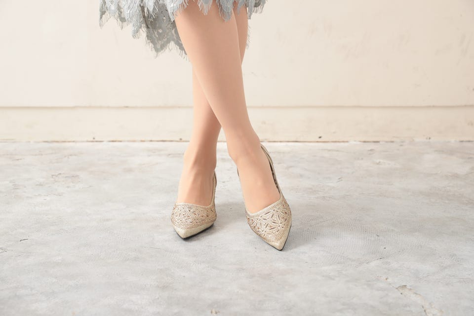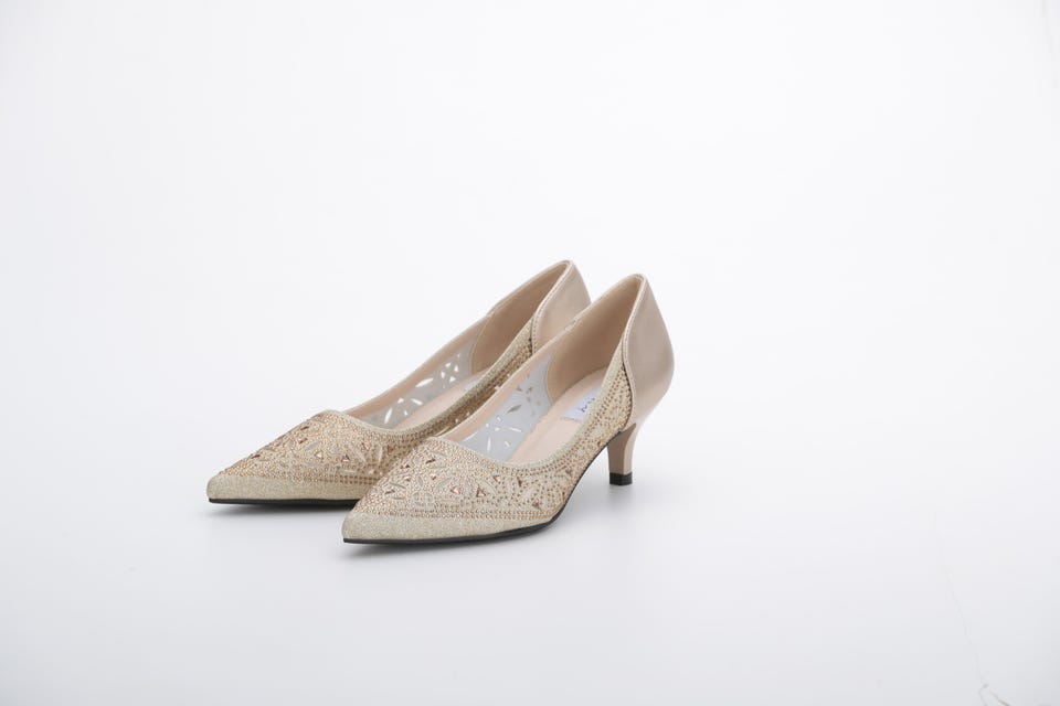 深めの履き口で、しっかりとホールド感もあり、安定感のある5cmヒールだから長時間のパーティーシーンでも無理せず履いてられます。 中敷は低反発クッションが入っています。