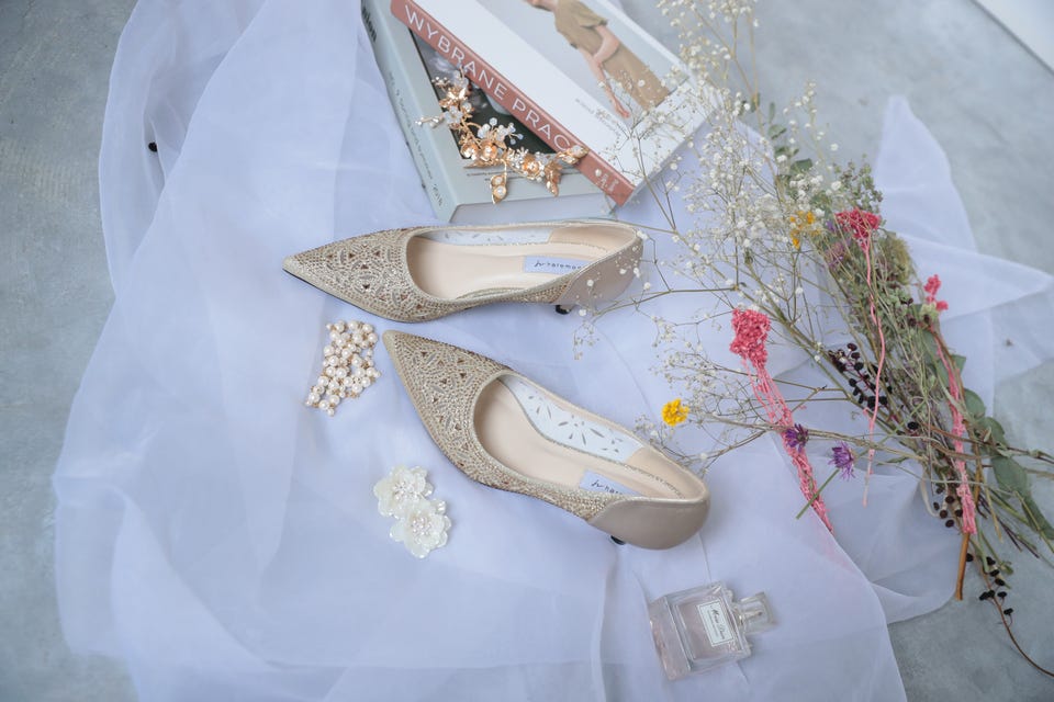 ビジューは同色で主張しすぎず、ほどよい華やかさがあります。