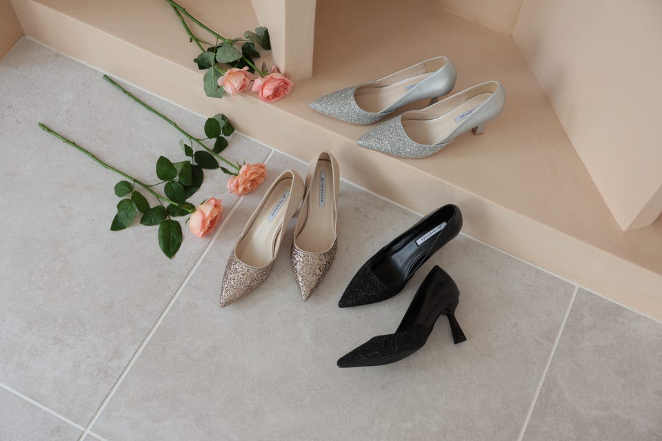 結婚式やパーティーなど、華やかな場面にぴったりのヒールパンプスです。