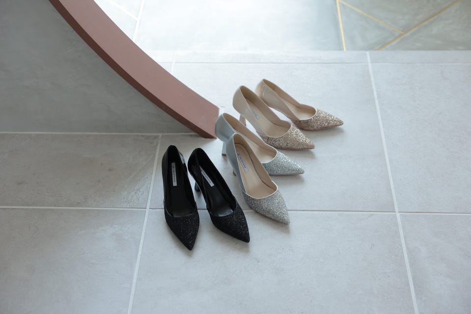 結婚式やパーティーなど、華やかな場面にぴったりのヒールパンプスです。