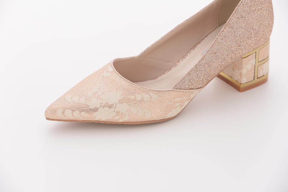 繊細なレース生地を使用した上品なパンプス。