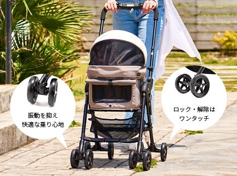 ミリミリのサイズと押しやすさ、乗り心地もそのままに、運びやすくコンパクトな4.0kgを実現したスマートモデルのペットカート。