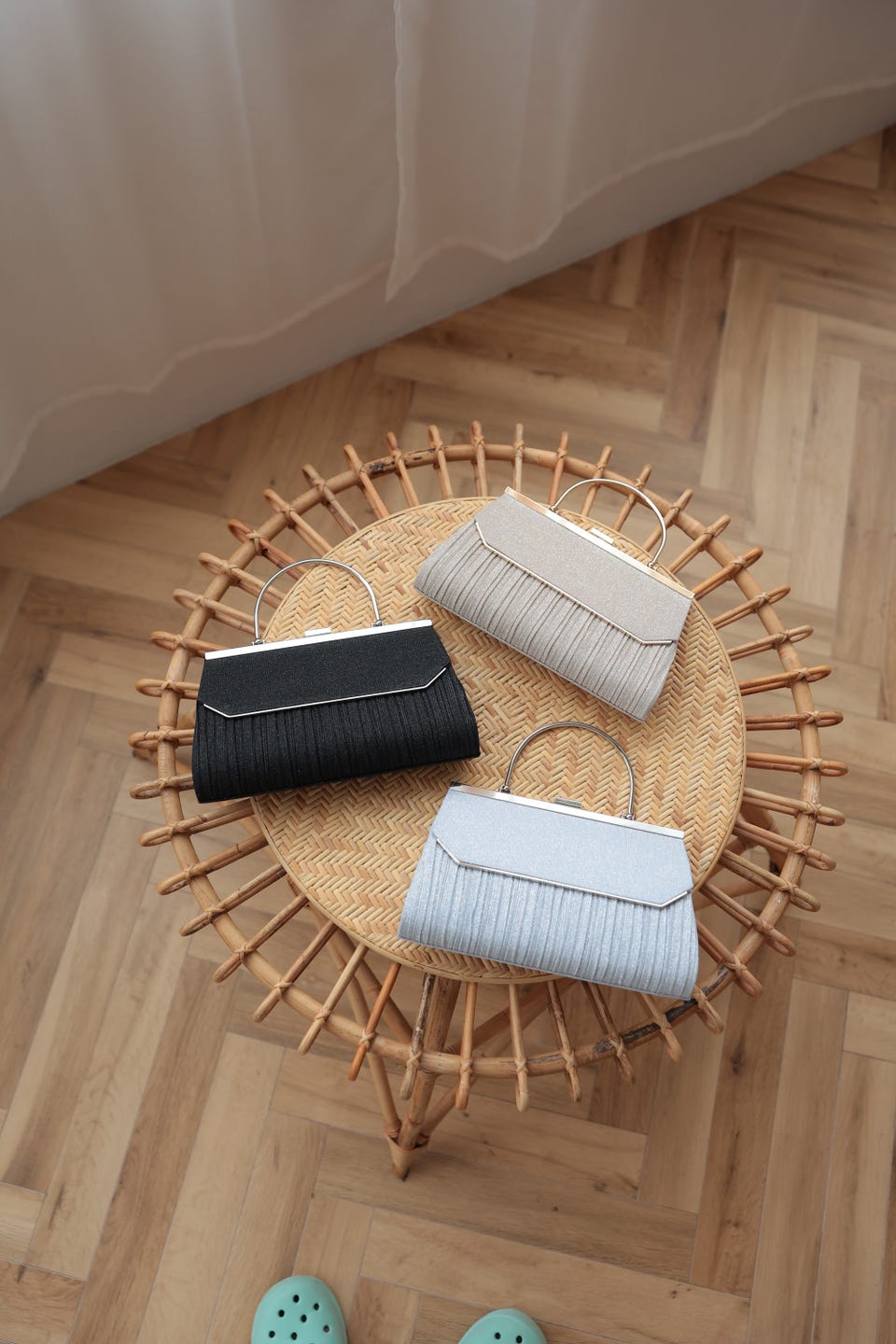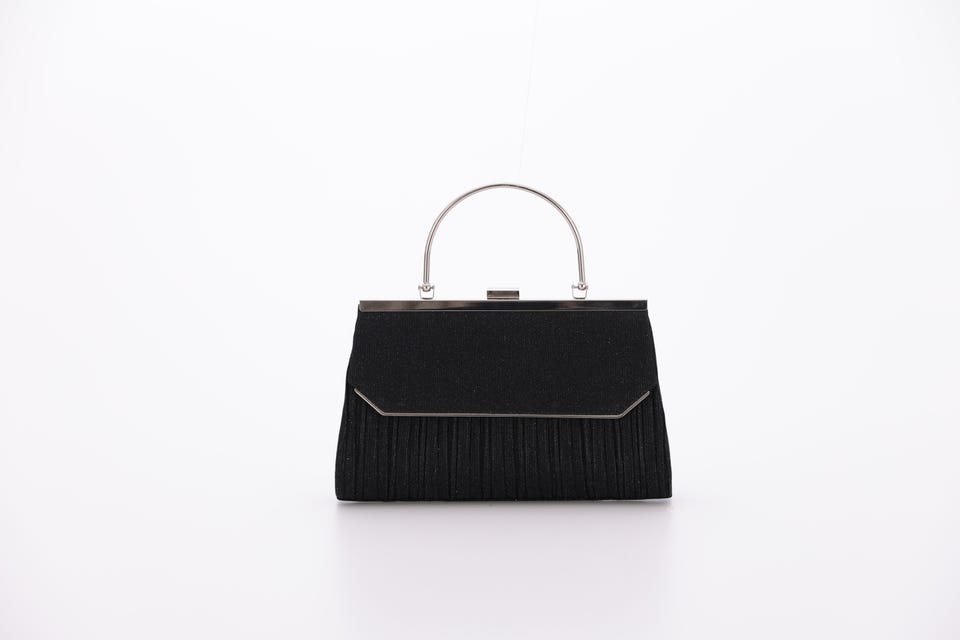 アートマリー ラメプリーツハンドル付きパーティーバッグ ブラック