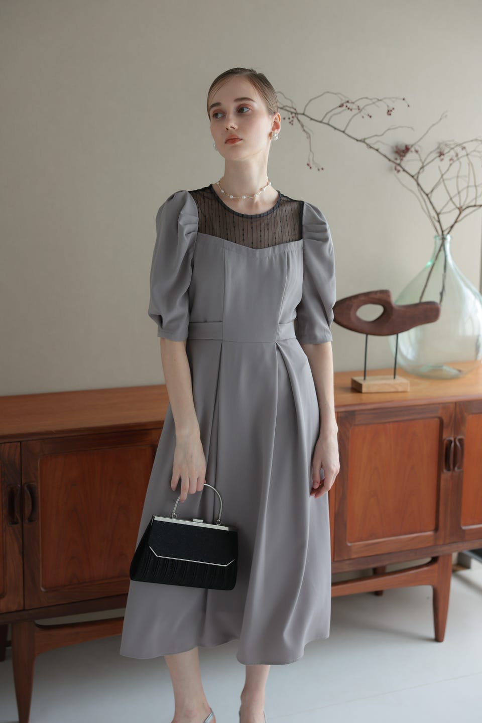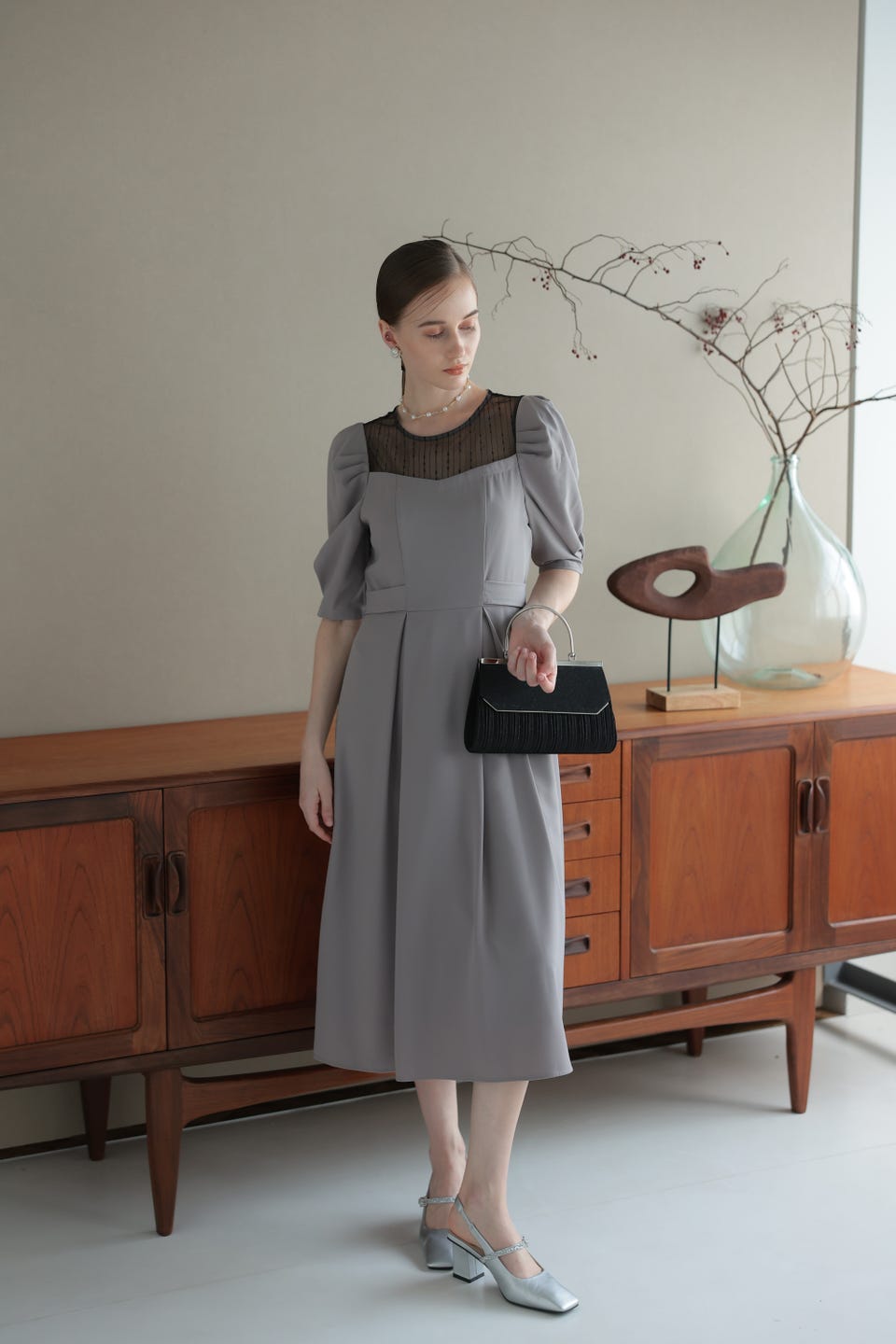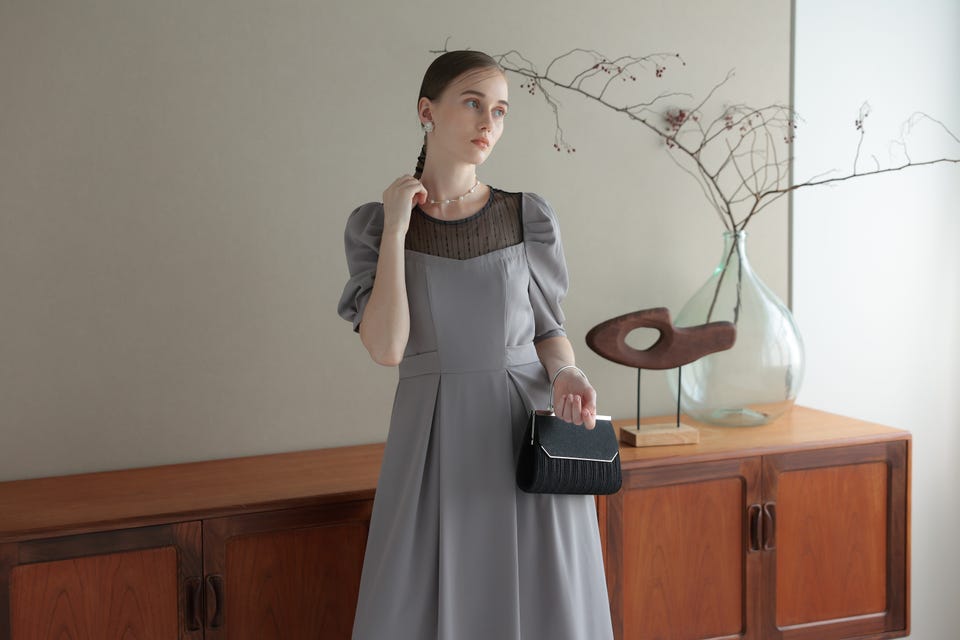光沢感のある素材とプリーツデザインが華やかで、エレガントな印象を与えてくれます。