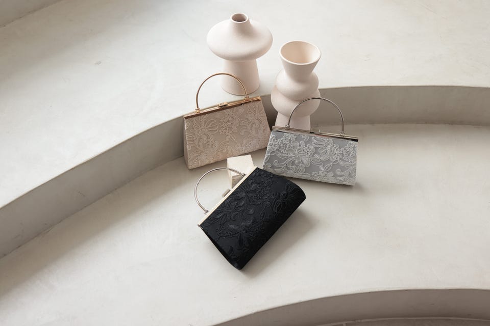 刺繡レースデザインが上品な印象を与えてくれるハンドバッグ