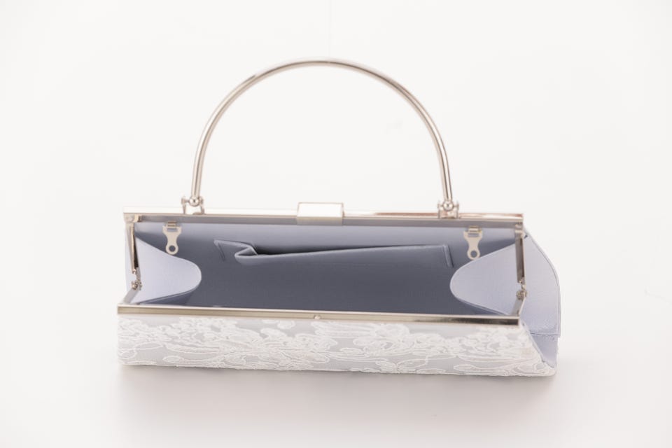 刺繡レースデザインが上品な印象を与えてくれるハンドバッグ