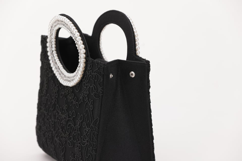 持ち手についたパールがアクセントになってくれるデザインバッグ