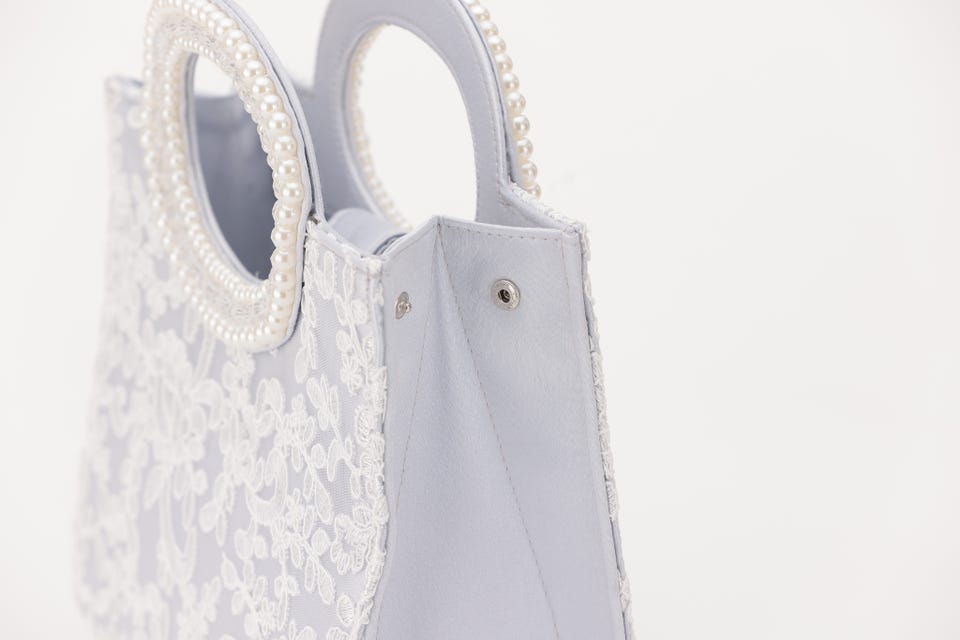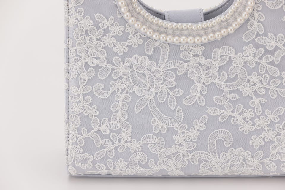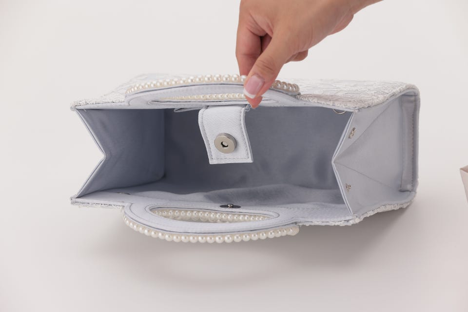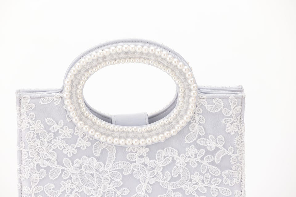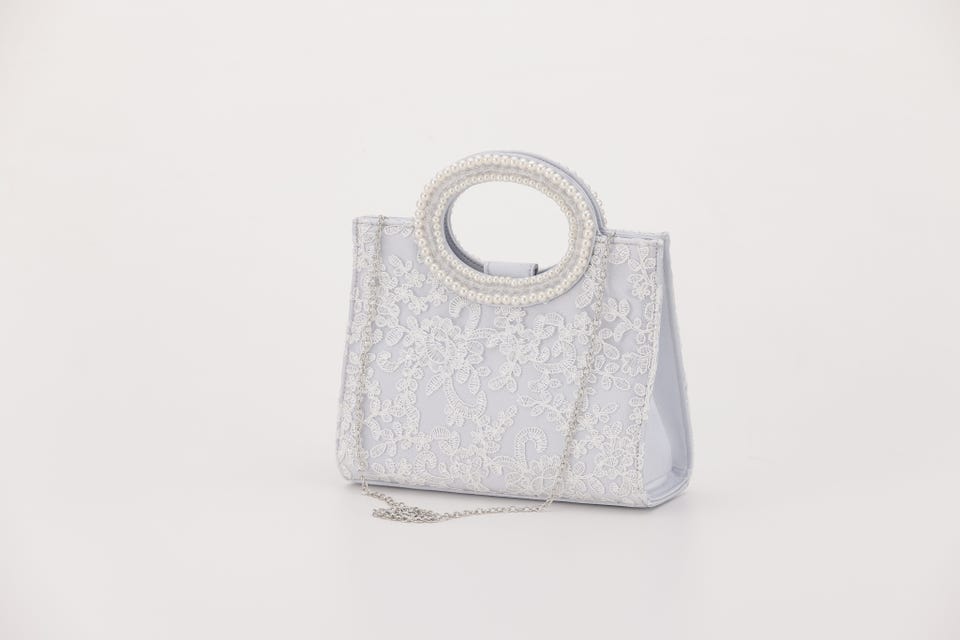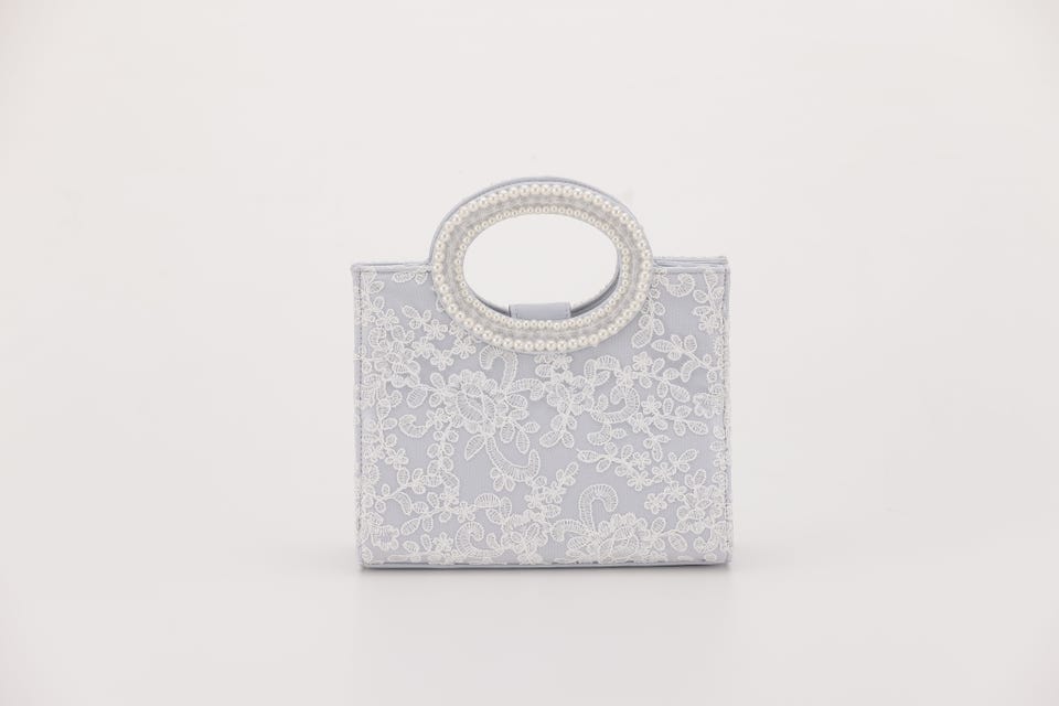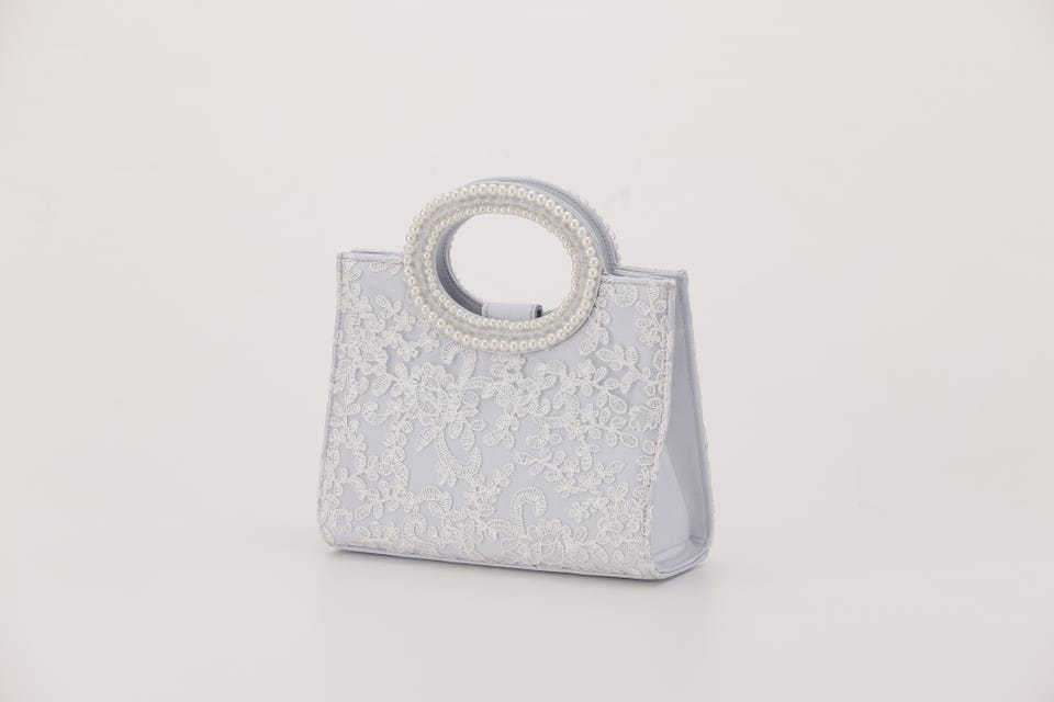 パールと刺繍で女性らしさをアップさせてくれるパーティバッグ。口が大きく開き、収納力も抜群なので荷物が多くなりがちな日も安心して出かけられます。