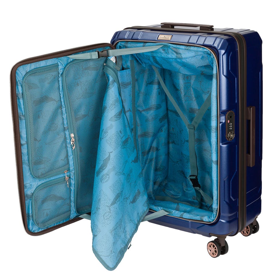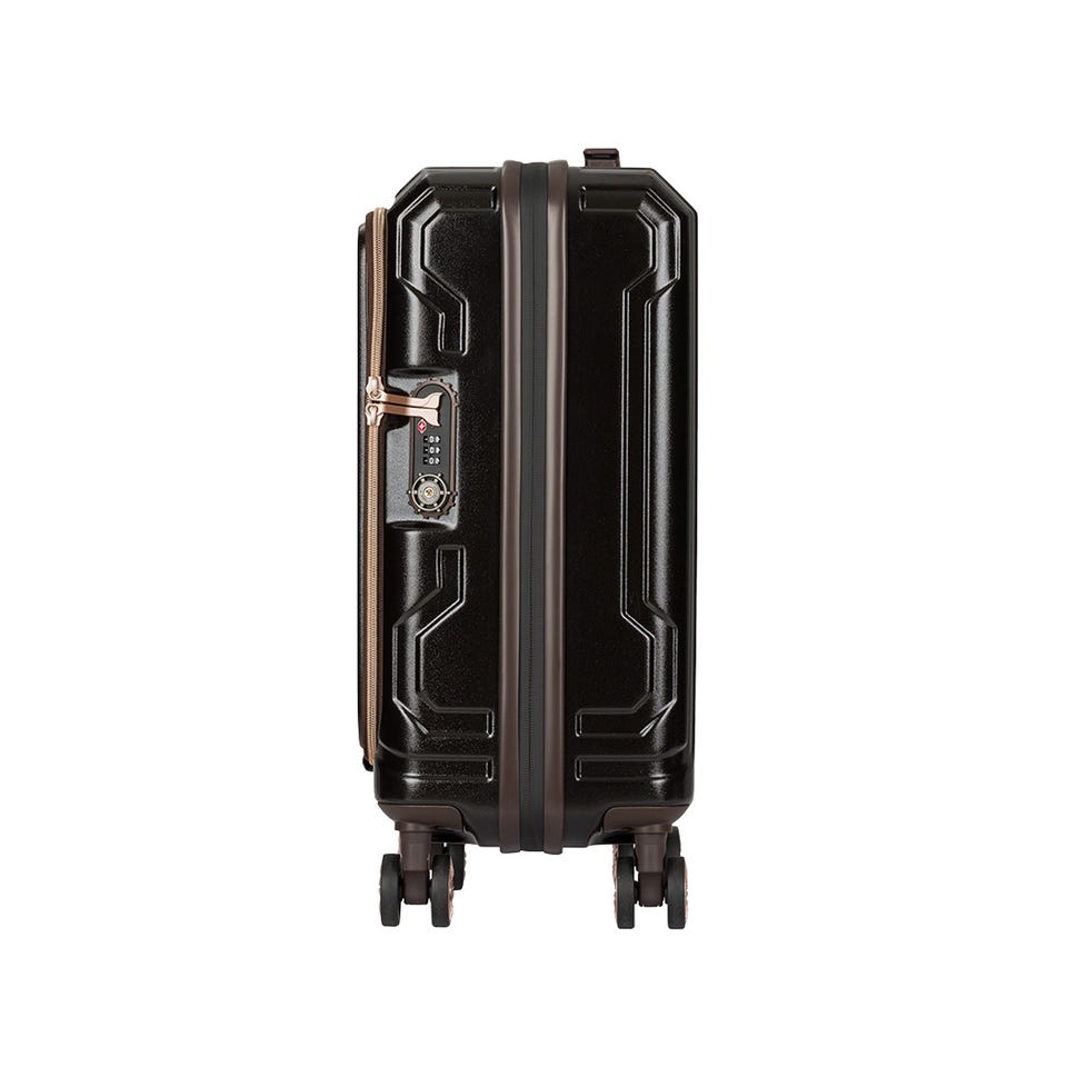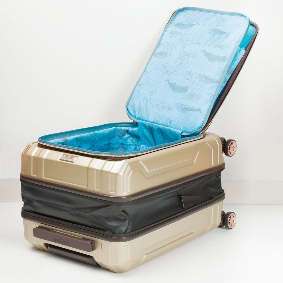 拡張部分の上下には特許技術を用いた形崩れを防止する特殊プレートを内蔵しているため、荷物の出し入れ時にスーツケースを横にしても形状が崩れません。