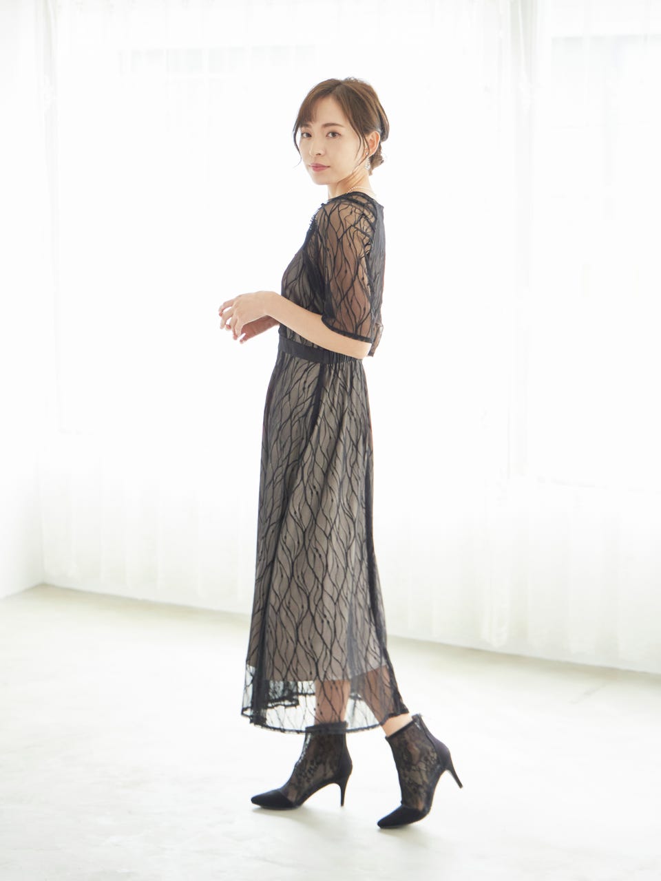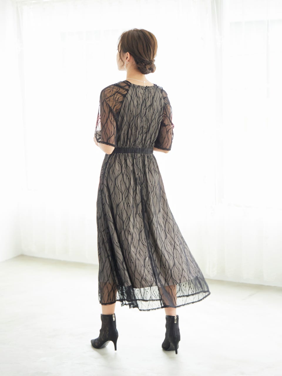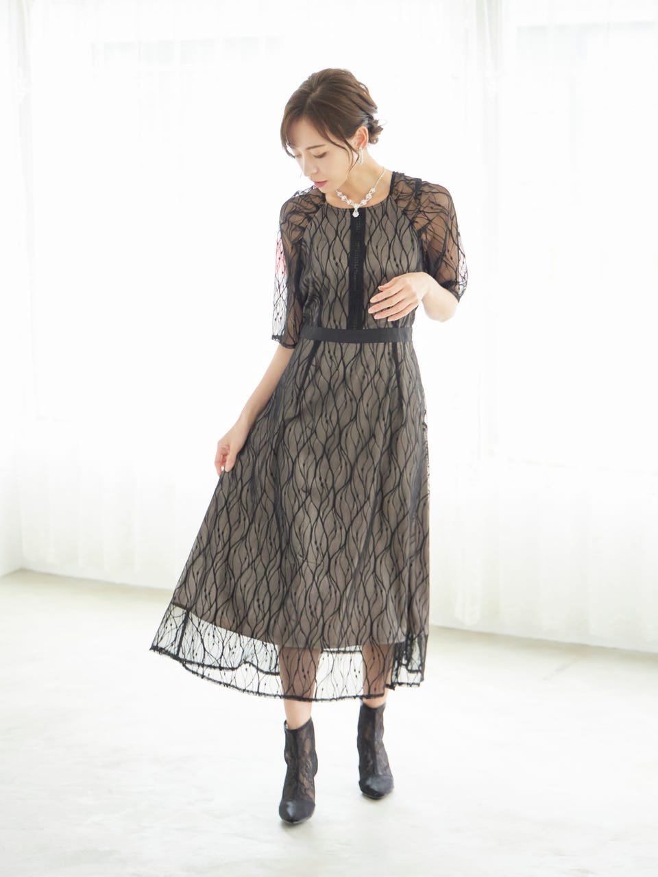 ボタニカル柄がかわいい総レース仕様が華やかで大人らしいワンピース