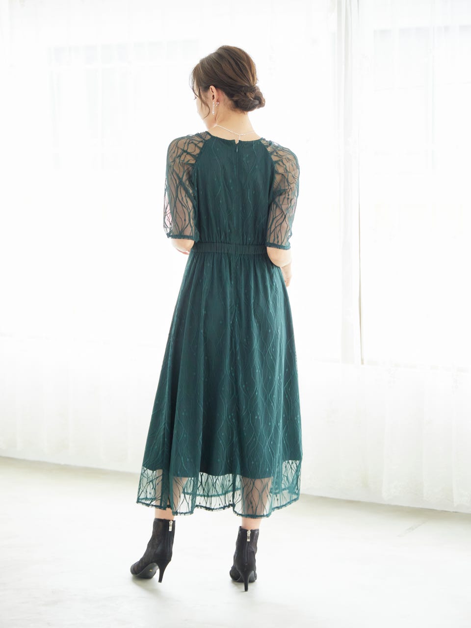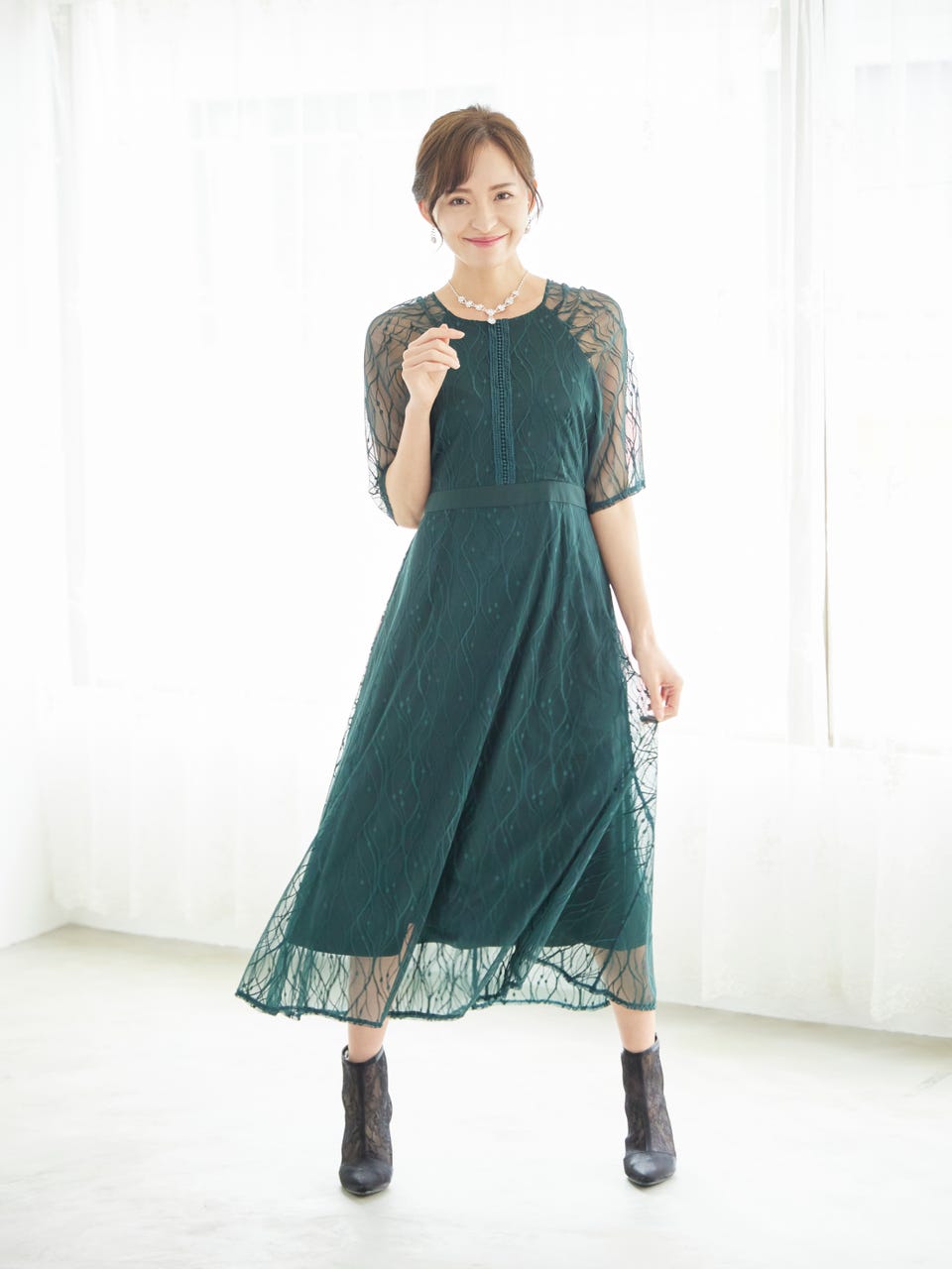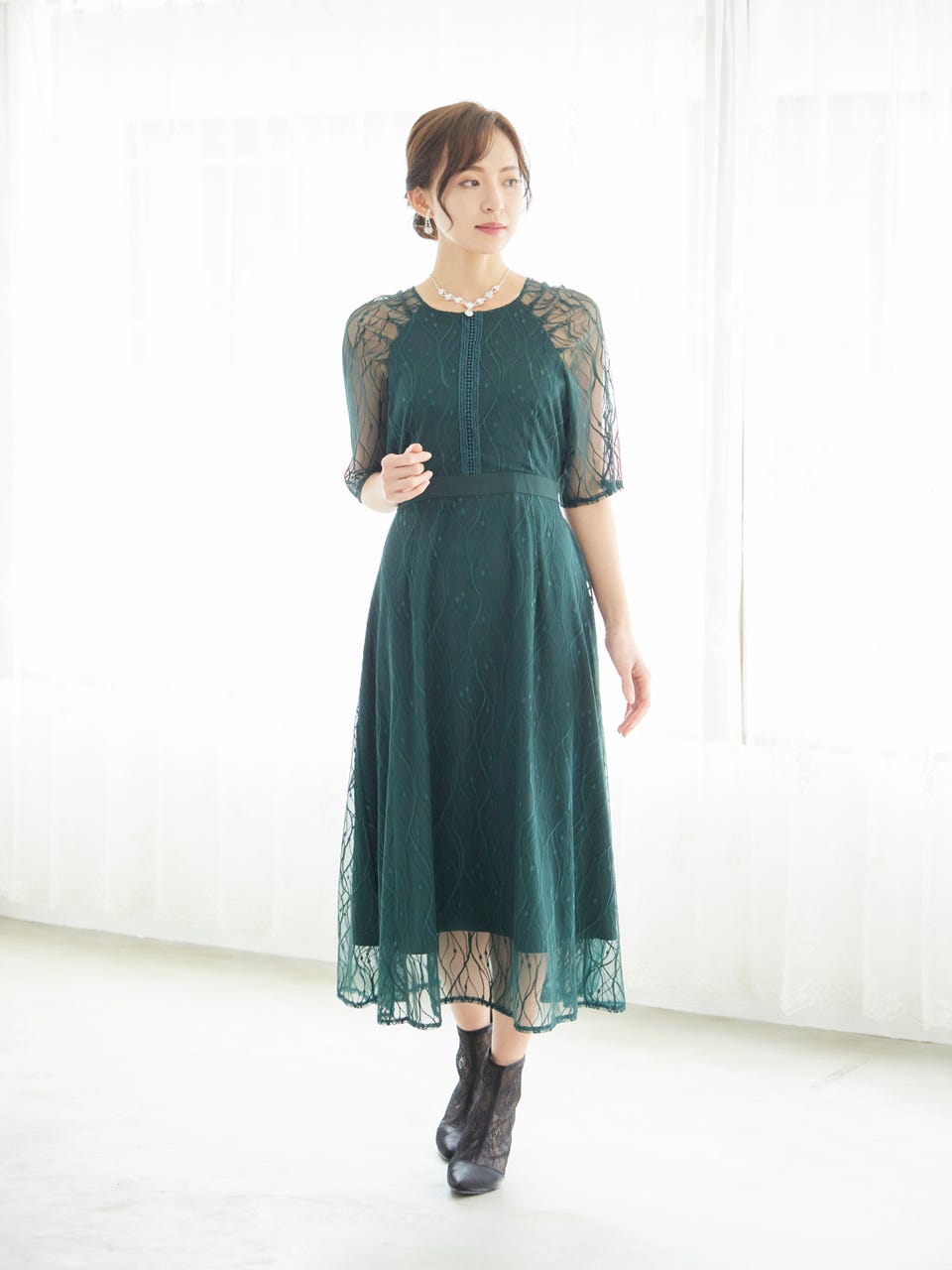 BELINDA DE CAPRIS ラグランスリーブレース ワンピースドレス グリーン Lサイズ