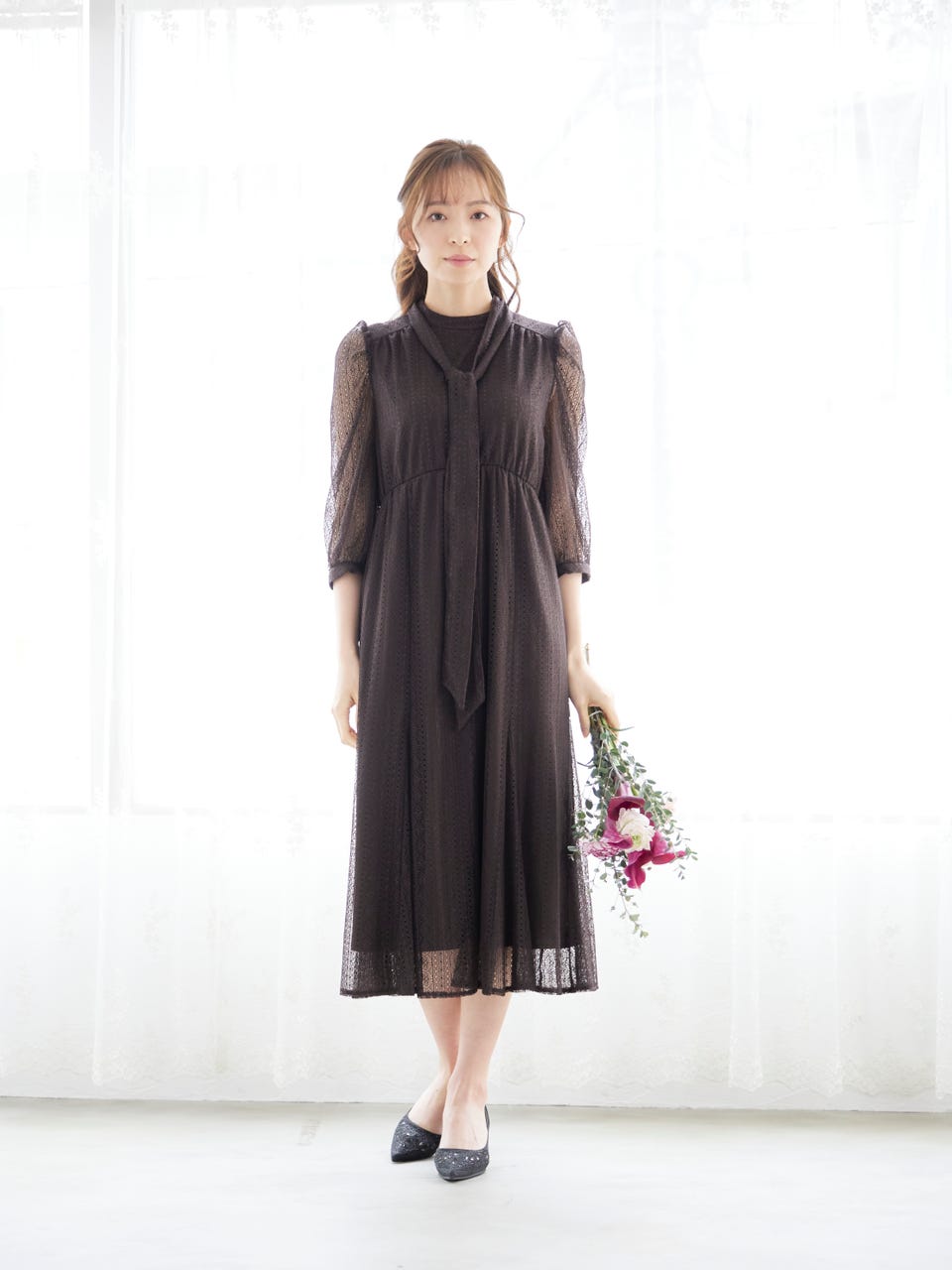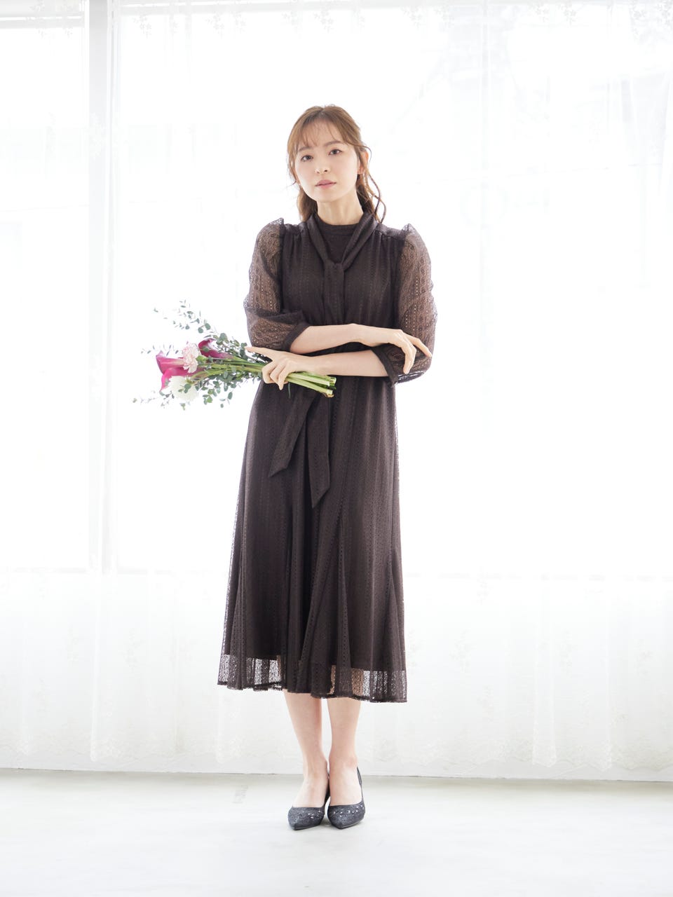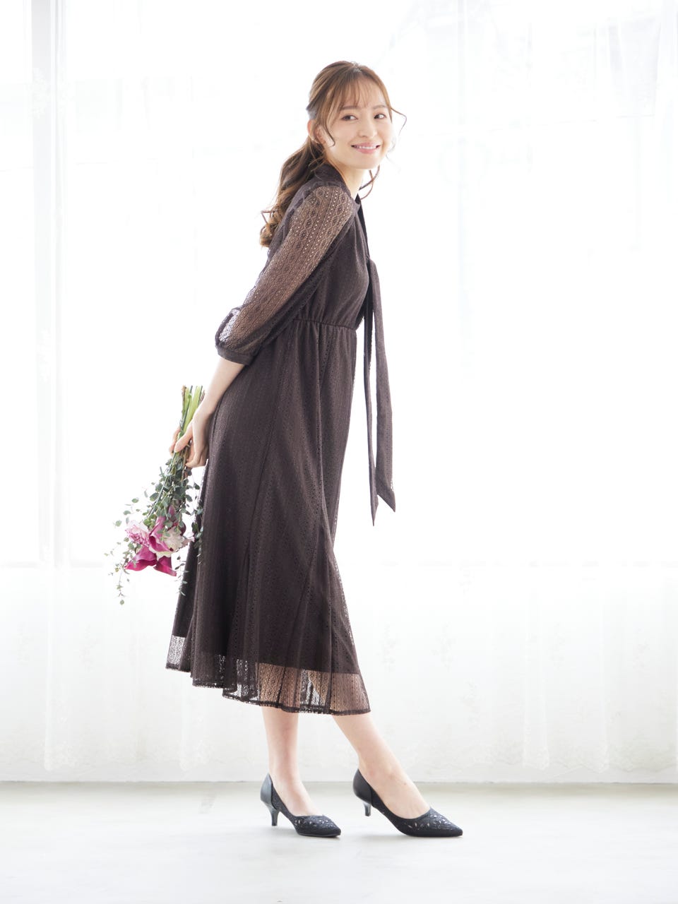 スカート部分はフレアで丈も長めなので体系をカバーし、上品な雰囲気を演出できます。