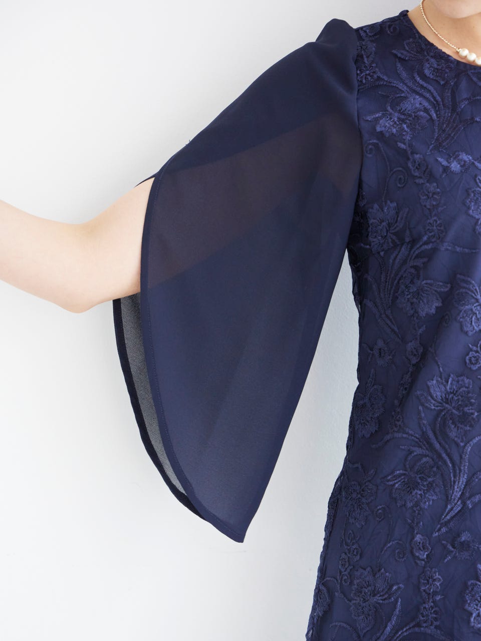 2枚袖が動きやすく、シフォン素材を使って透け感を出しています。