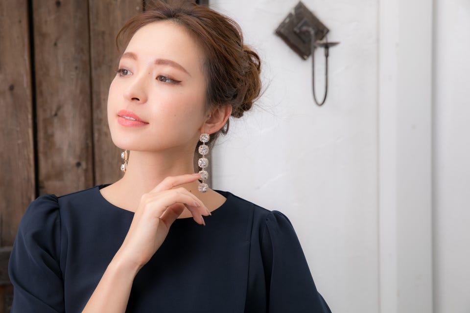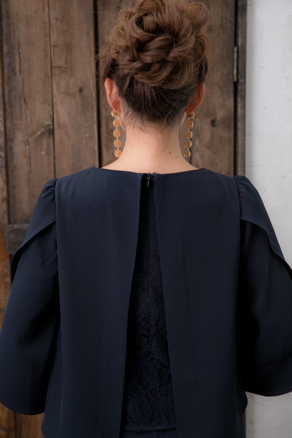 背面のレースがさりげなく見えることで大人な雰囲気を醸し出すデザイン。