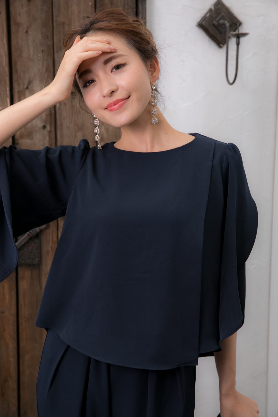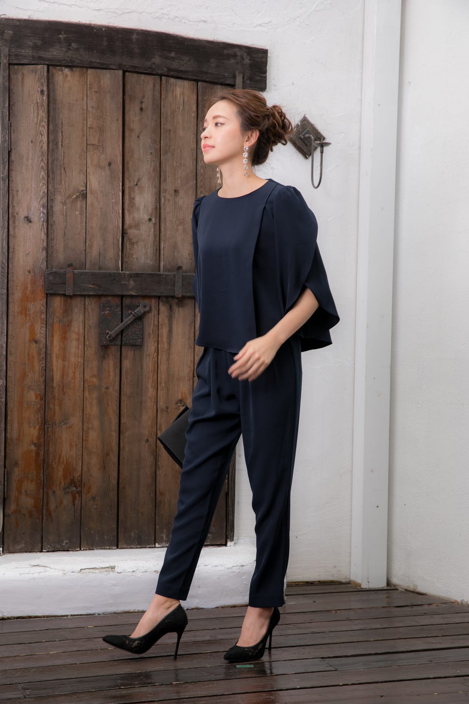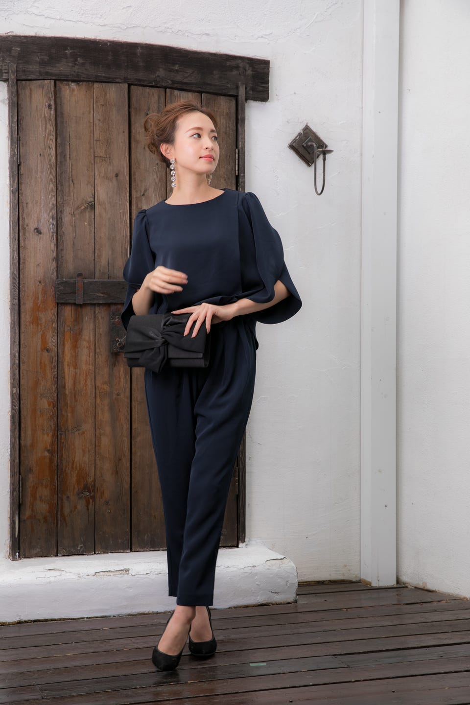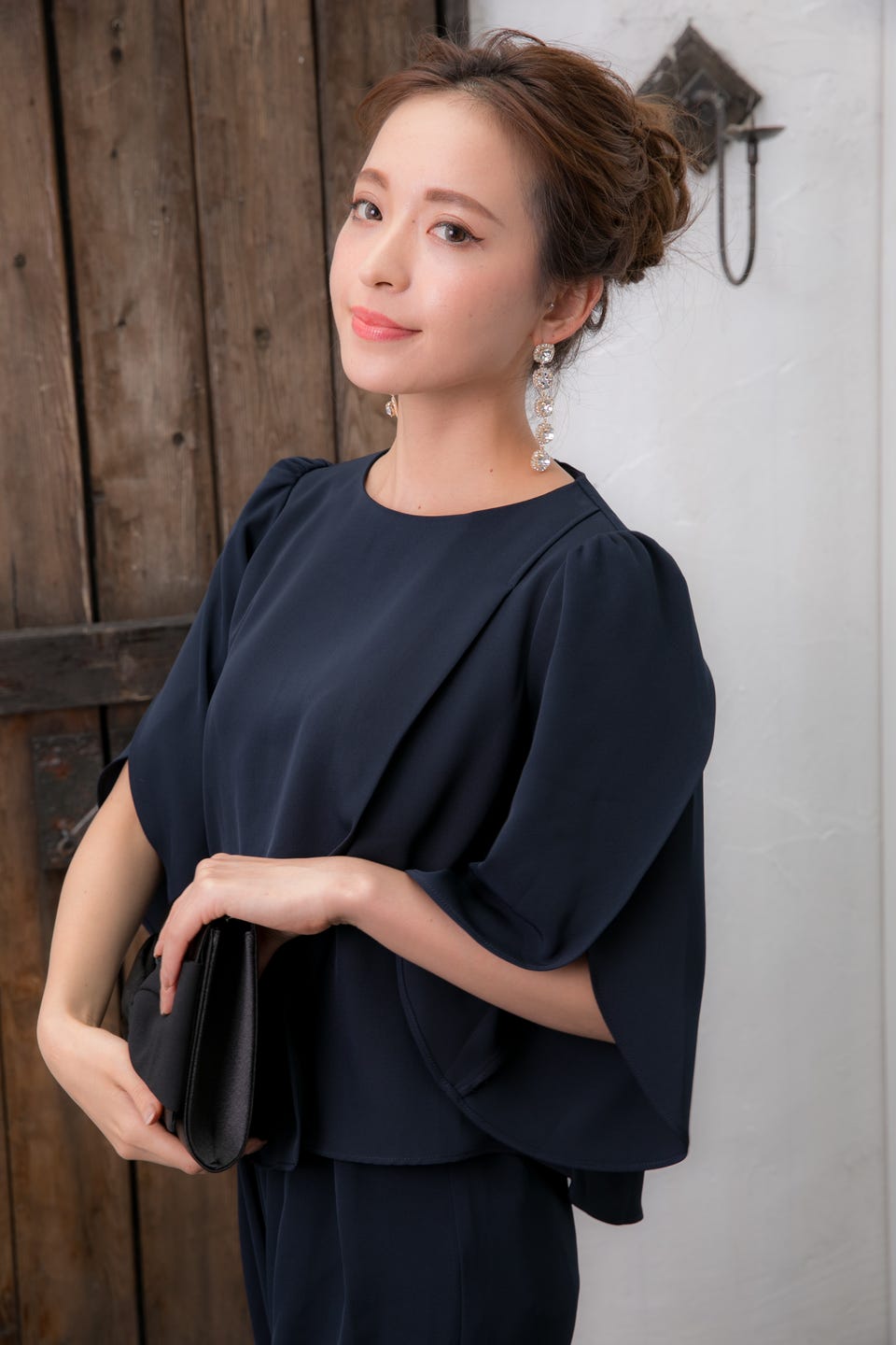 BELINDA DE CAPRIS チューリップスリーブ セットアップ パンツドレス ネイビー Lサイズ