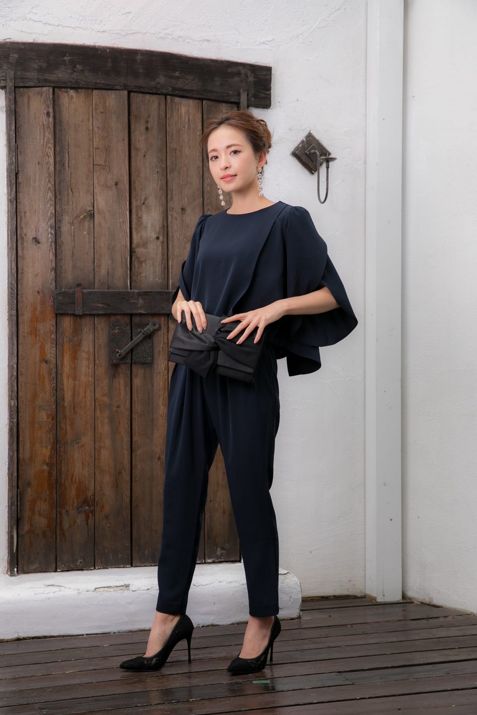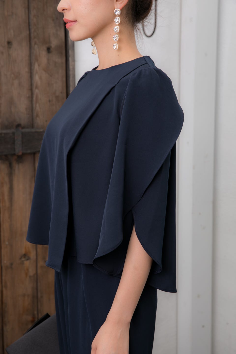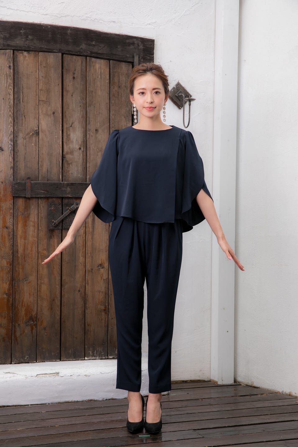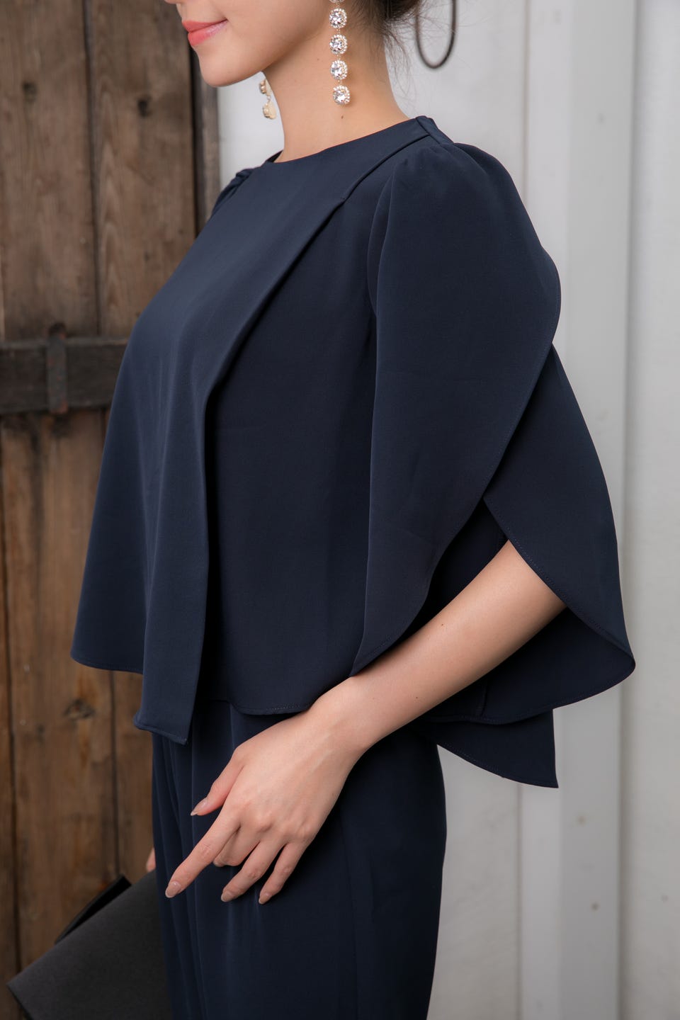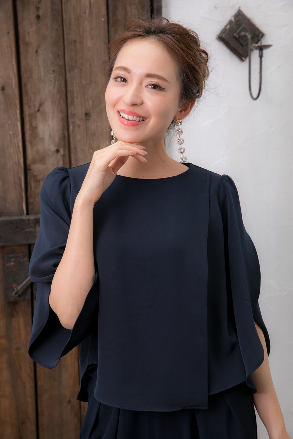 BELINDA DE CAPRIS チューリップスリーブ セットアップ パンツドレス ネイビー Lサイズ