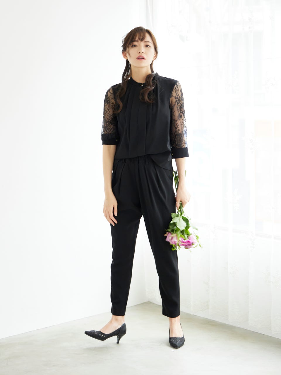 BELINDA DE CAPRIS 前開きブラウス セットアップ テーパードパンツドレス ブラック Sサイズ