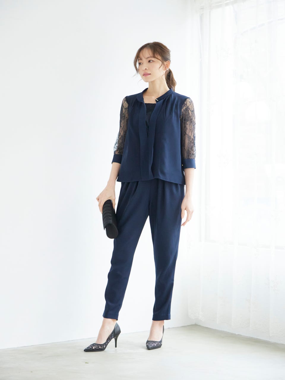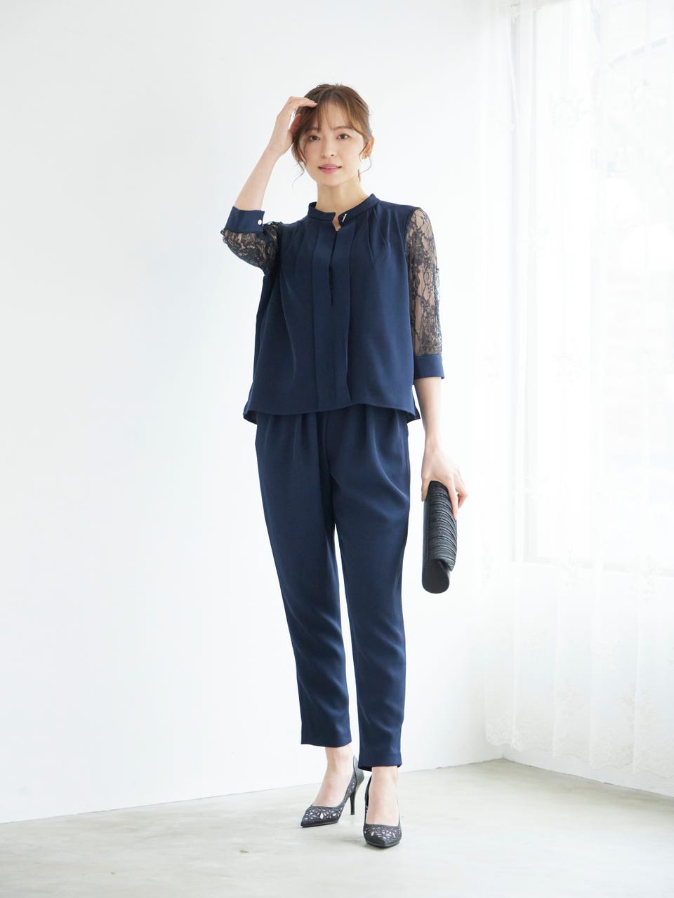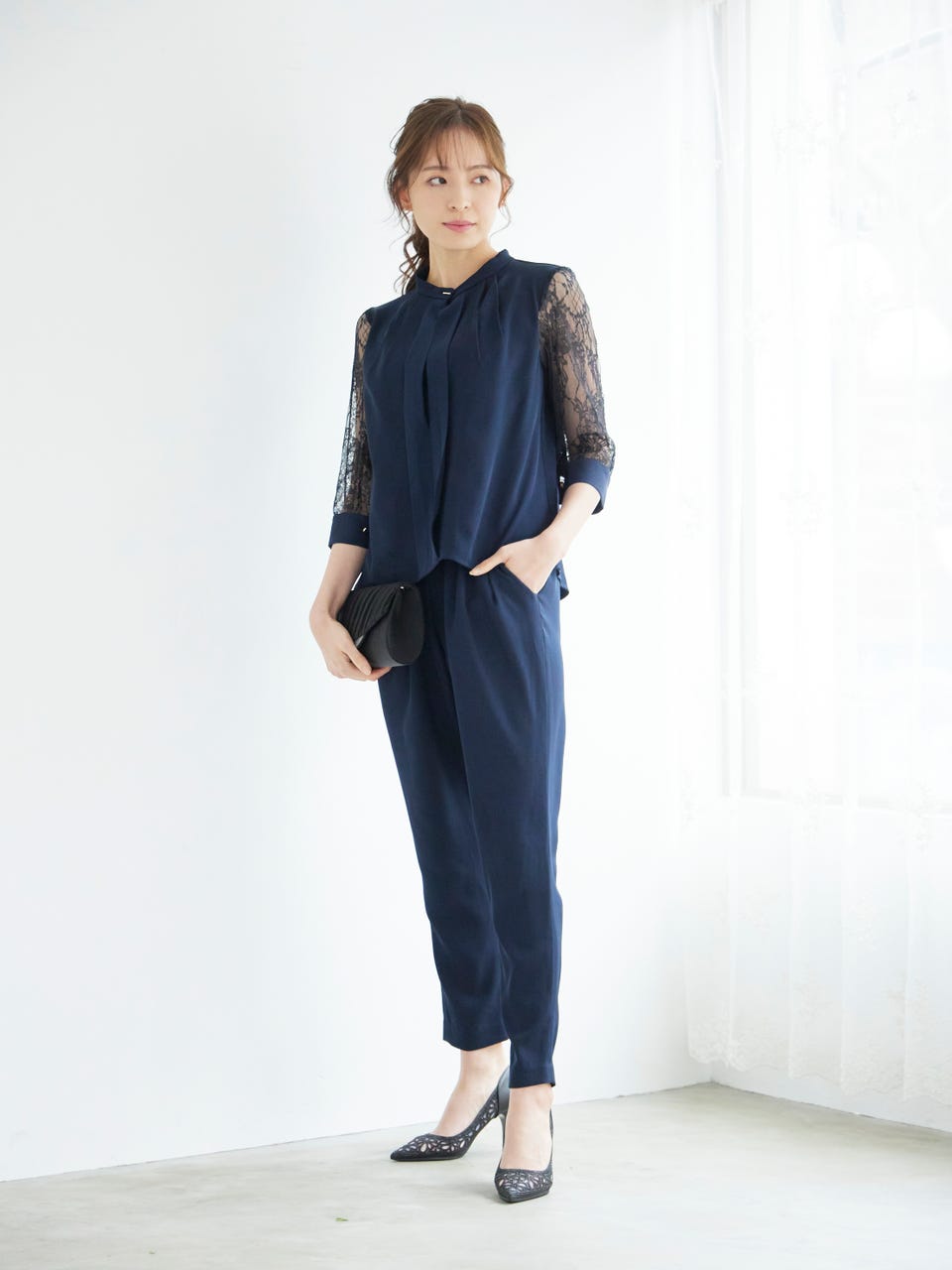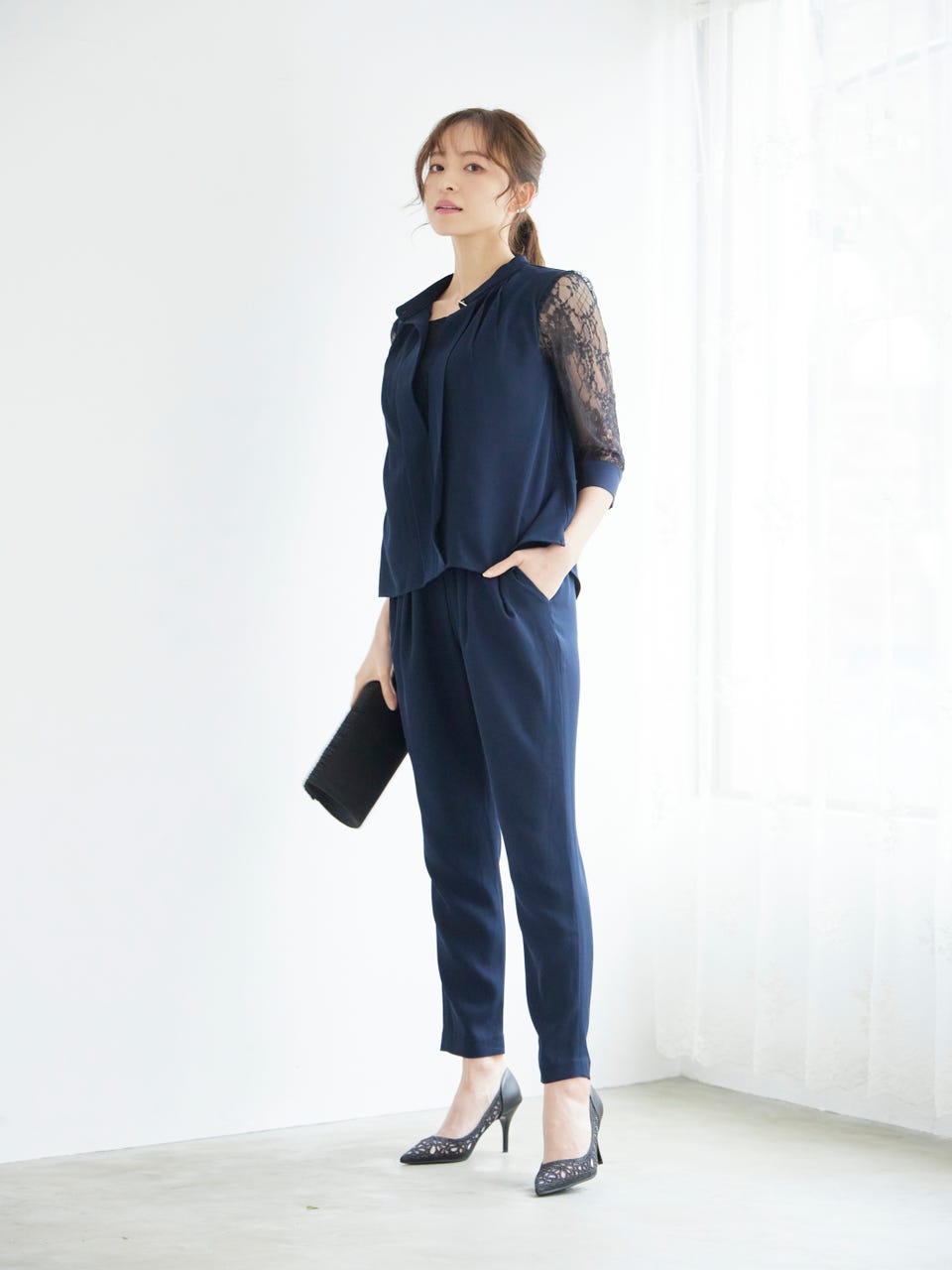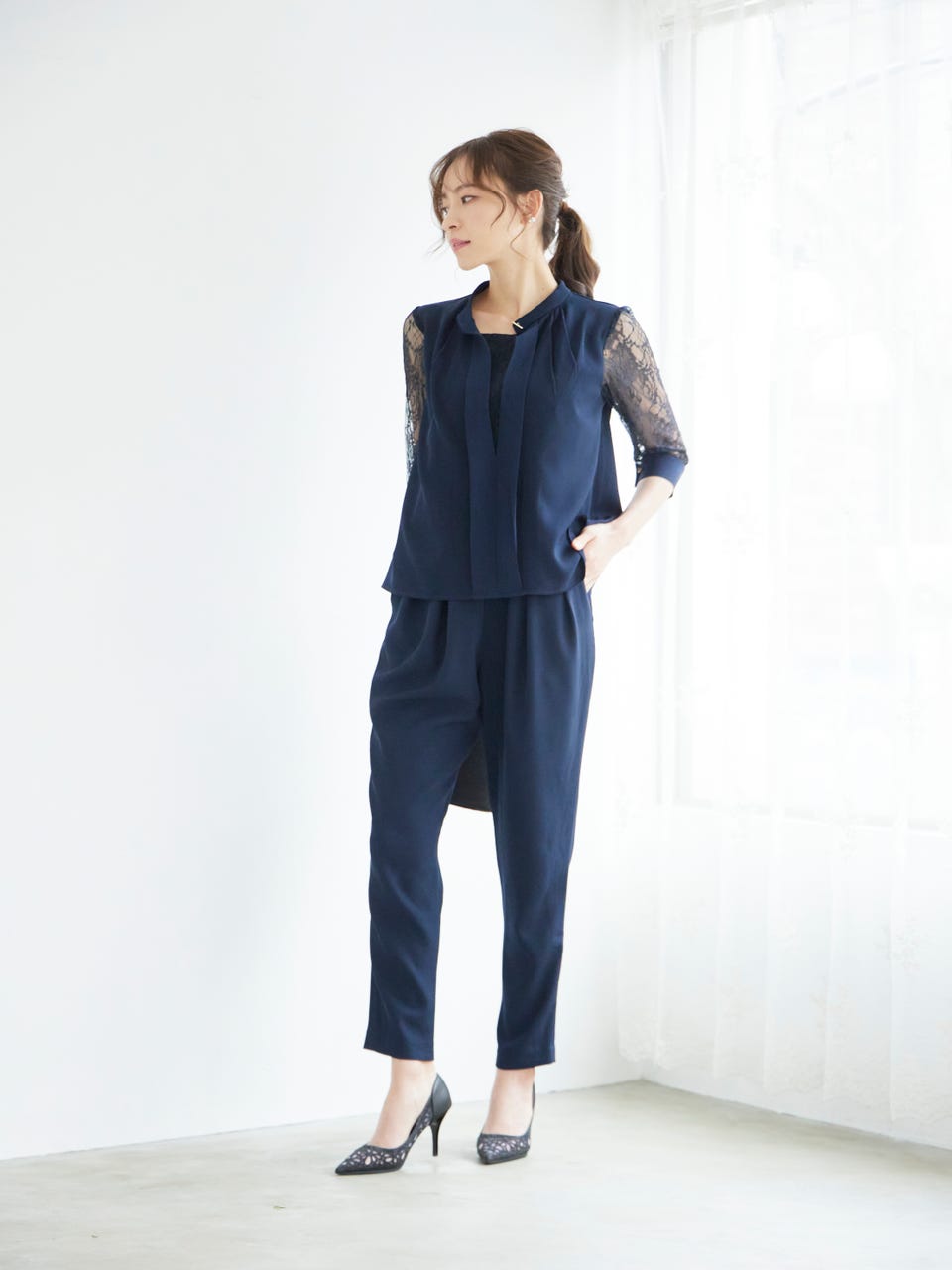 BELINDA DE CAPRIS 前開きブラウス セットアップ テーパードパンツドレス ネイビー Mサイズ