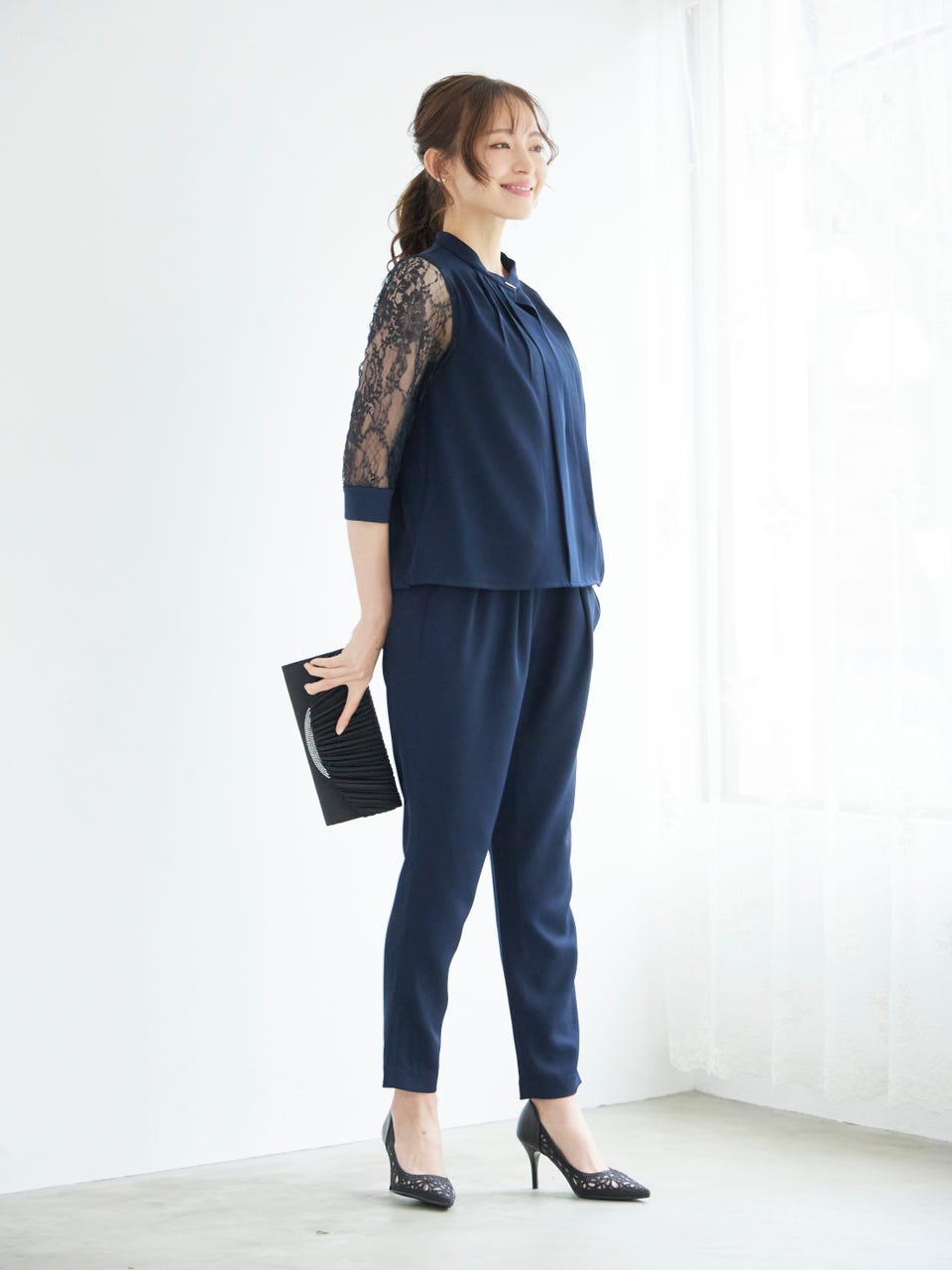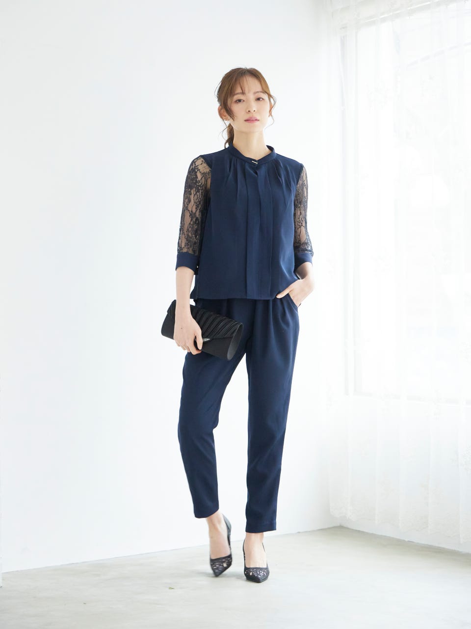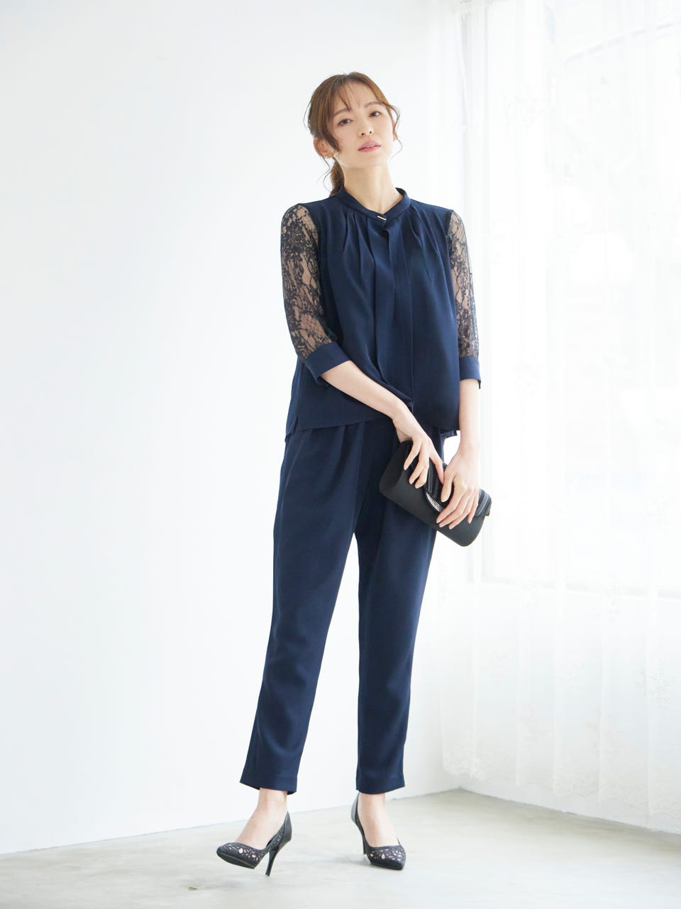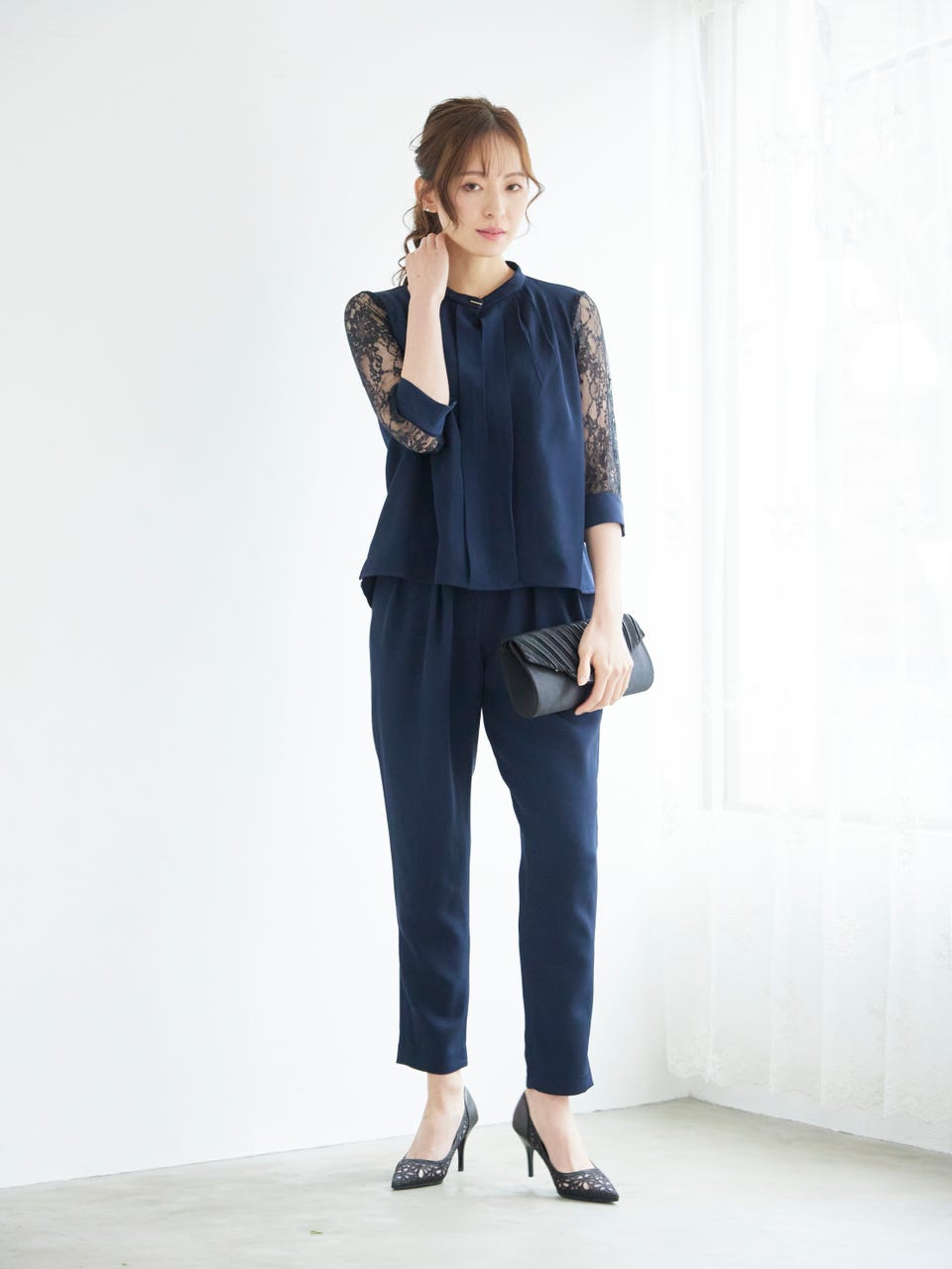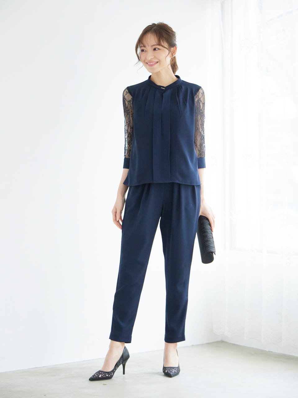 BELINDA DE CAPRIS 前開きブラウス セットアップ テーパードパンツドレス ネイビー Mサイズ