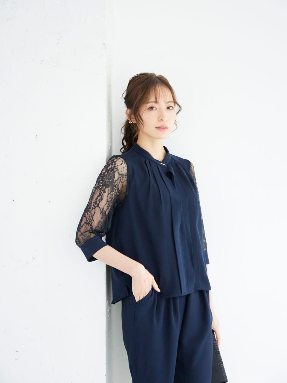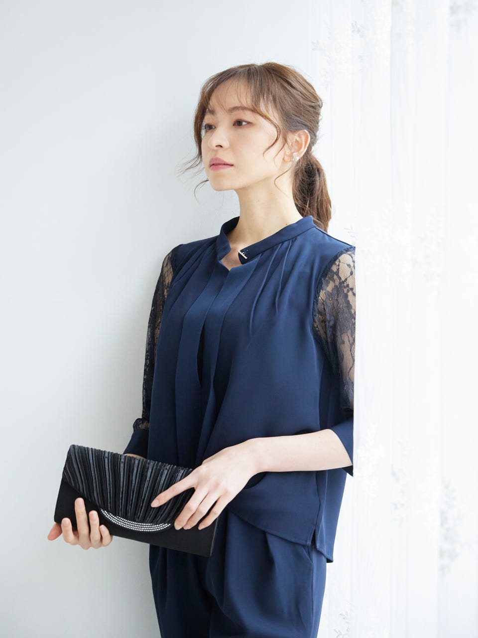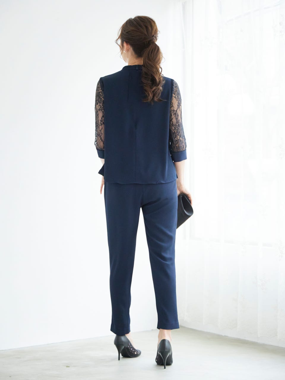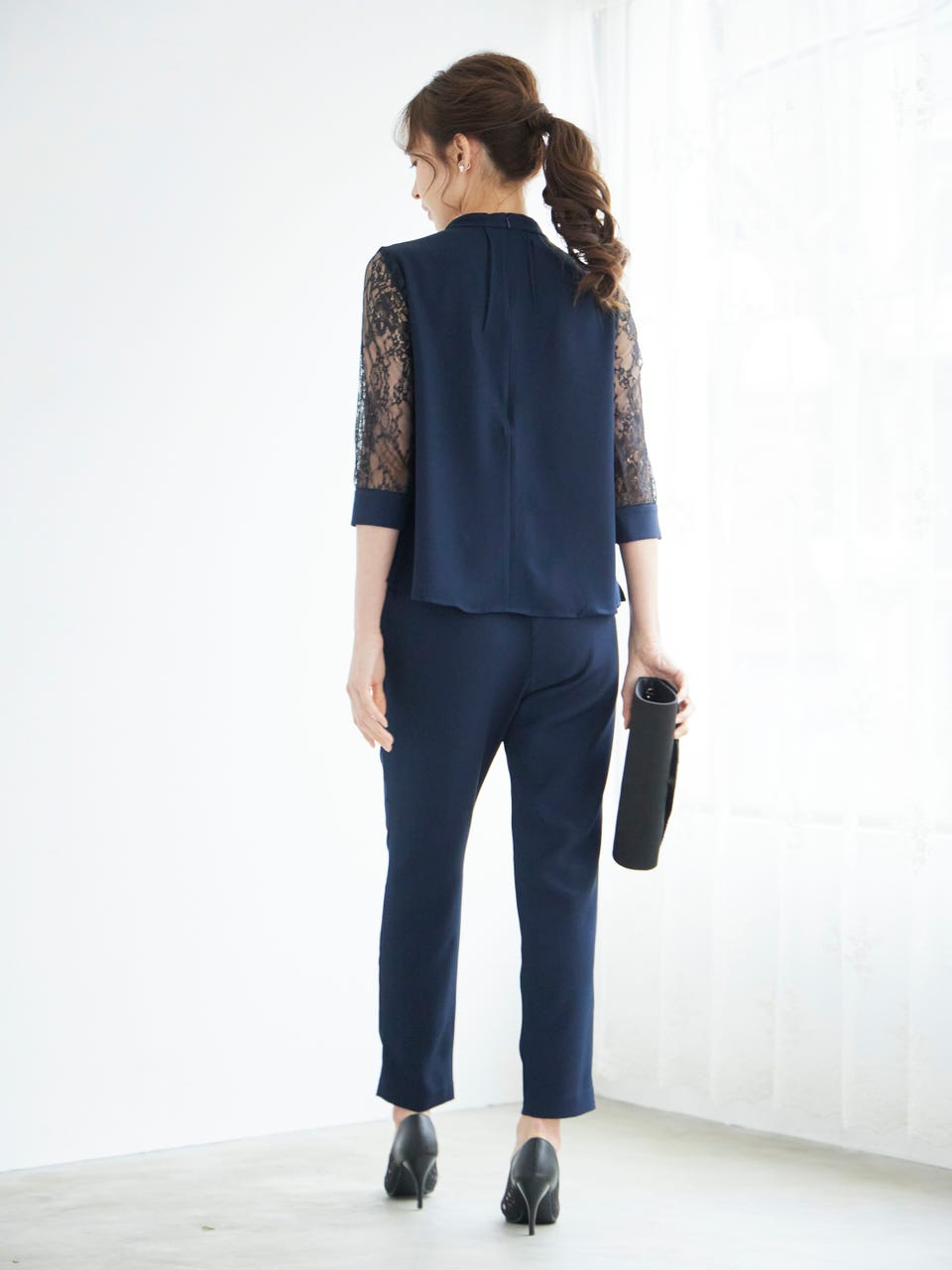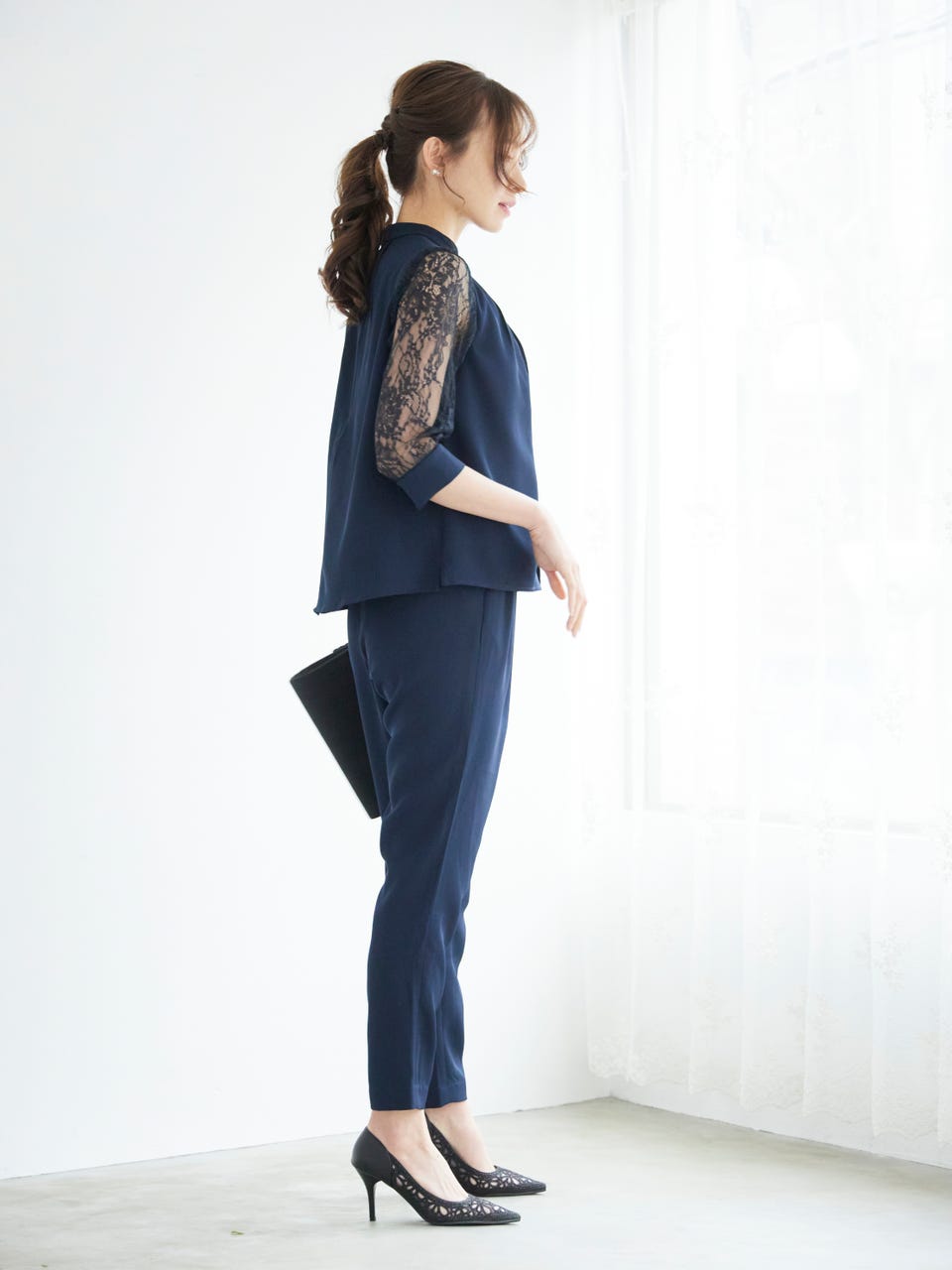 BELINDA DE CAPRIS 前開きブラウス セットアップ テーパードパンツドレス ネイビー Mサイズ