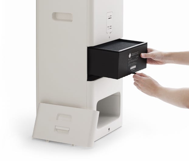 部屋中の空気を循環させながら、0.3μmの微粒子を99.97%キャッチするTrueHEPAフィルターに通過させます。さらにサッカーフィールド6面分※1 の表面積を持つ活性炭フィルターがペット臭やタバコ臭などの気になるニオイを素早く除去。