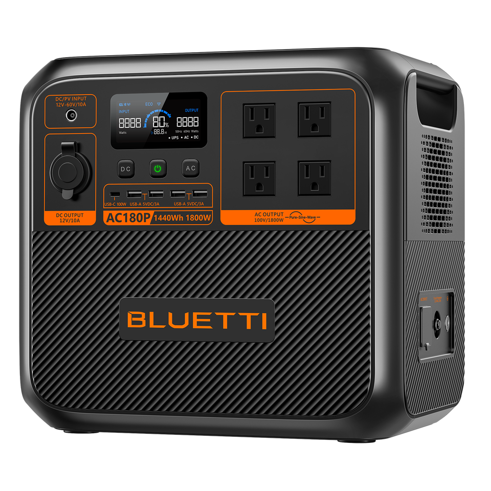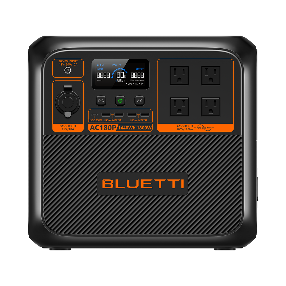 BLUETTI AC180Pは、純正弦波インバータとリン酸鉄リチウムイオン電池を使用したポータブル電源です。