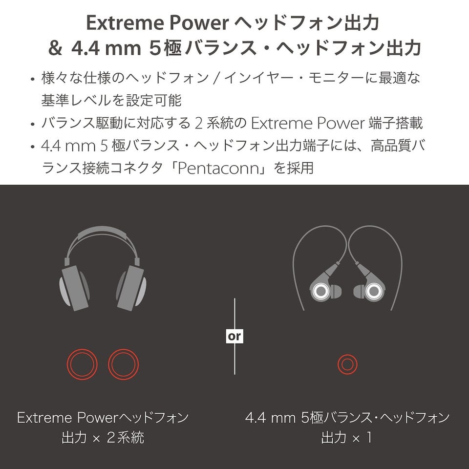 - リファレンス・クラスのサウンドとヘッドルームを実現するExtreme Powerヘッドフォン:バランス出力対応
