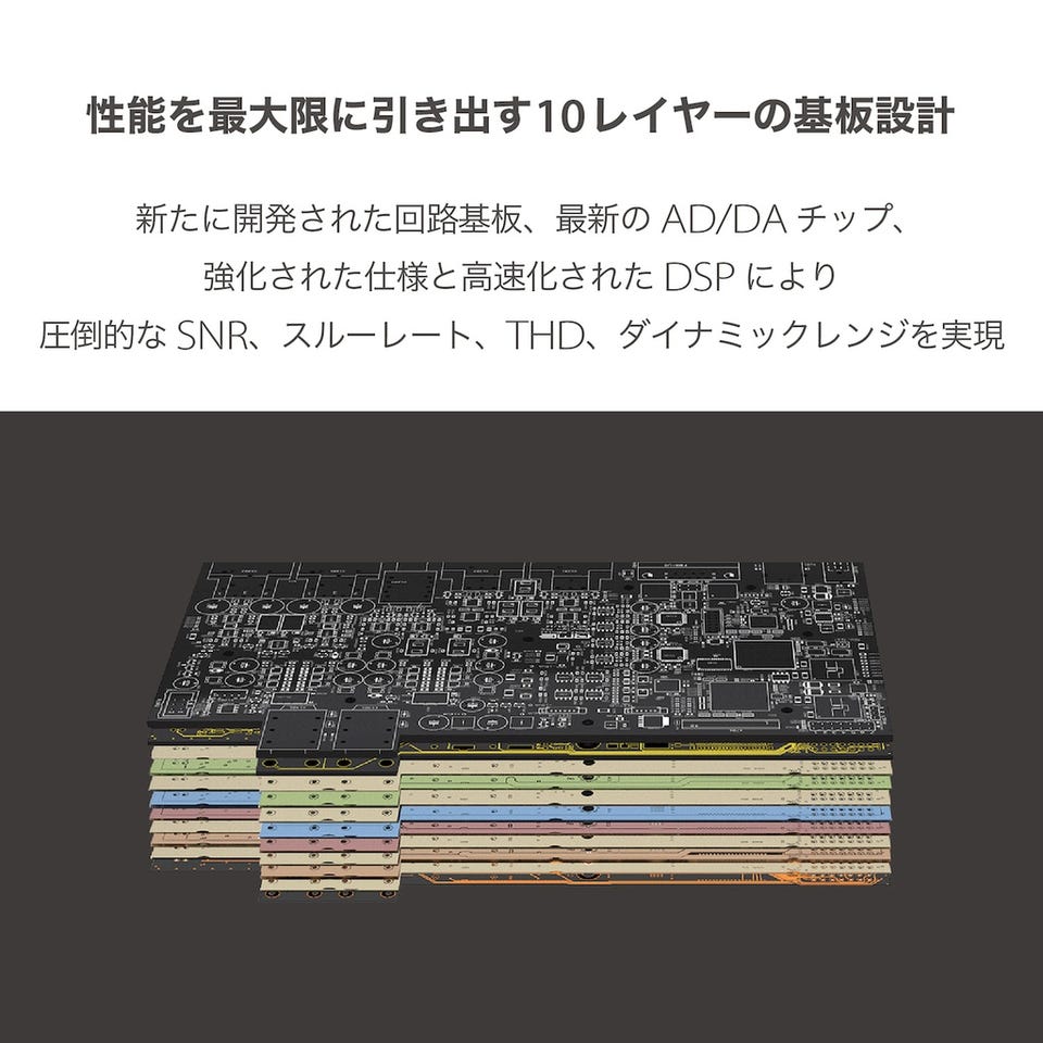 新搭載のExtreme Powerヘッドフォン・ドライバー出力は極めて低いTHD値を達成しています。Extreme Power出力には 4-fold spread powerテクノロジーや、改善された熱伝導率、超低歪みドライバー回路などの技術が用いられています。その結果、32 Ω時のTHDはフル出力レベル(クリップ)付近でも-110 dB以下、SN比はDACと同等の122 dBA、出力インピーダンスはわずか0.1Ω、完全に安定した動作、そして0 ~ 80 kHzの周波数応答はトップエンドが 0.5 dB減少するだけに抑えられています。その結果、ハムやノイズ、歪みの全く無い、レベルに関わらず極めて透明でクリアなサウンドを実現しました。音楽のジャンルや使用環境を問わず最適なリスニング体験を提供します。