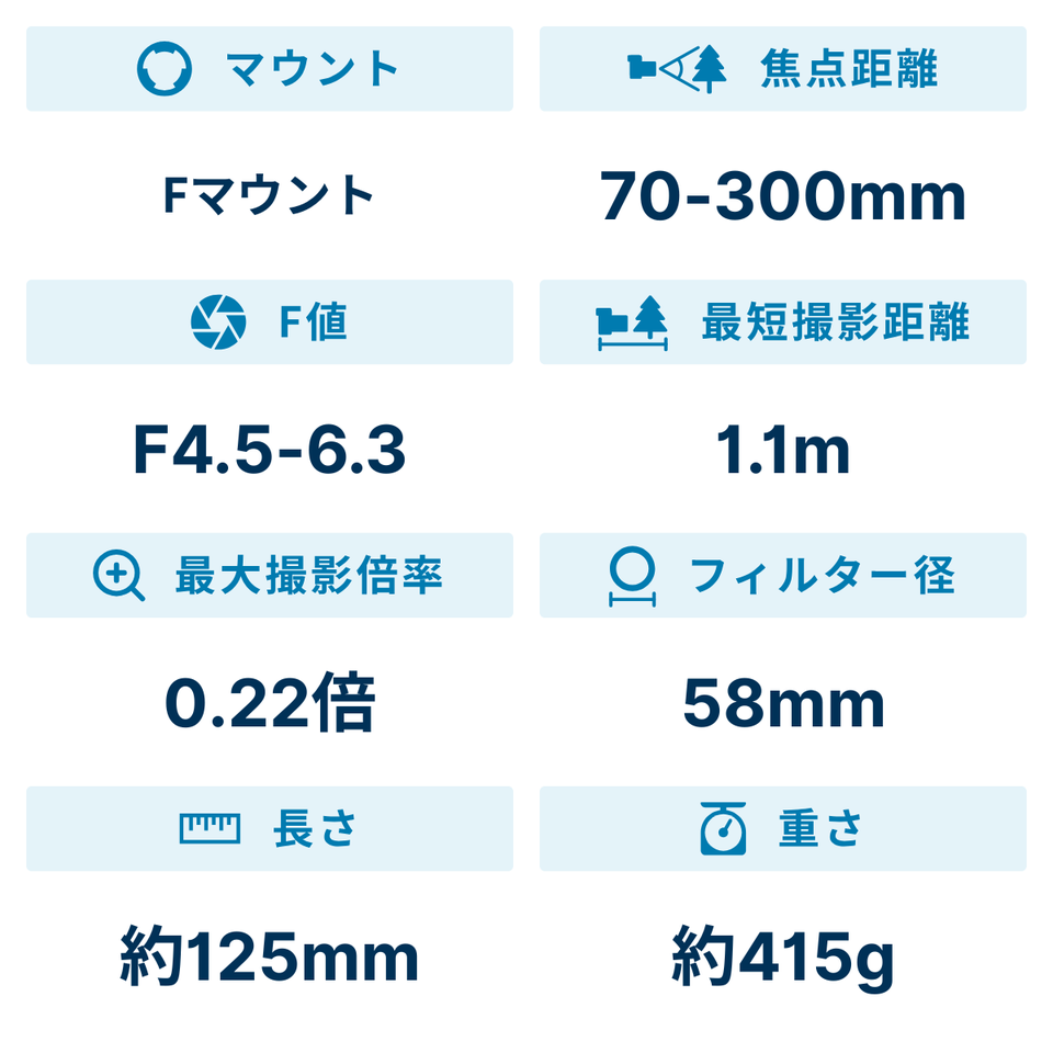 焦点距離70-300mm、小型・軽量の超望遠ズームレンズ