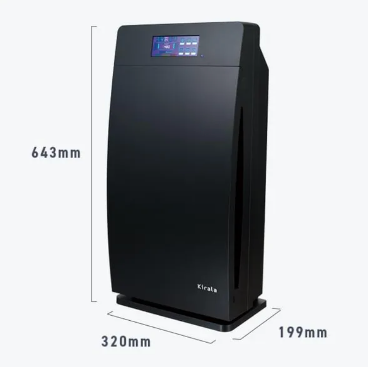 Kirala Airの空気清浄機能では、全6層の高性能フィルターを採用。集じんフィルターでは、花粉やホコリだけでなくPM2.5までも99.9%除去。ホルムアルデヒドや有害ガスなどの超微細な粒子も吸収・分解します。さらに脱臭フィルターでは、気になるニオイや有害ガスを吸収して除去。空気中の細菌も効果的に除菌します。