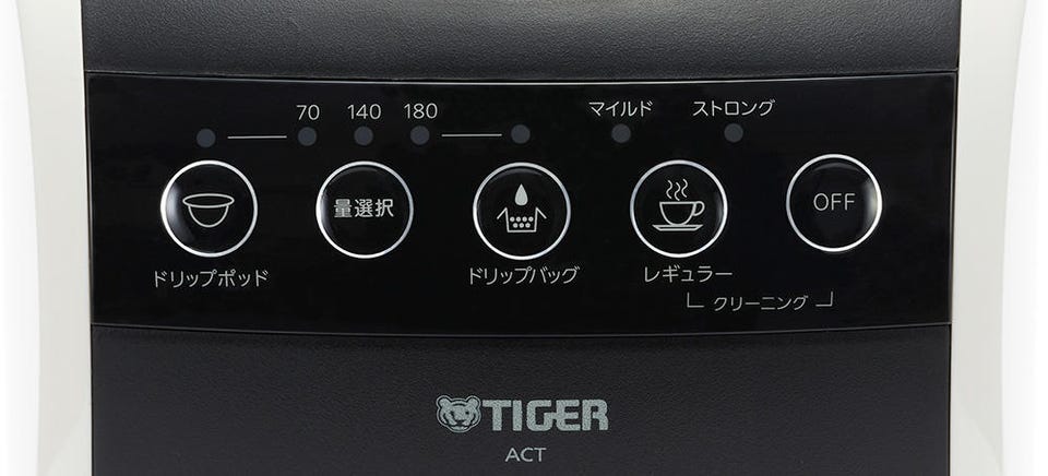 本体上部にある操作ボタンで抽出方法と湯量選択、レギュラードリップなら濃さをマイルド/ストロングから選ぶことができます。