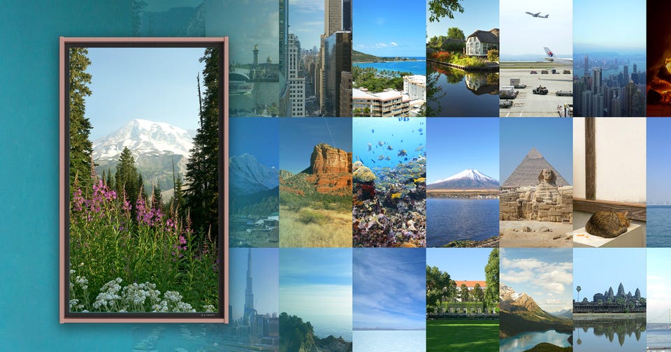 Atmoph Windowを家の壁にかけるだけで、動画とサウンドでまるで世界の風景が目の前に広がっているように楽しめます。ハワイやパリ、アイスランドにエジプトなど、世界中1,600カ所以上を独自に撮影してきました。