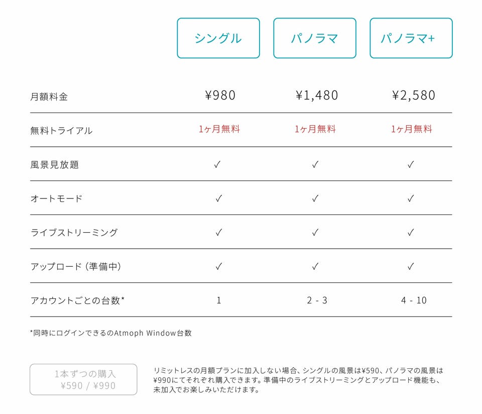月額プランの「風景見放題 リミットレスプラン」はレンタル料金とは別途で加入が必要です。(1ヵ月間無料トライアルあり)