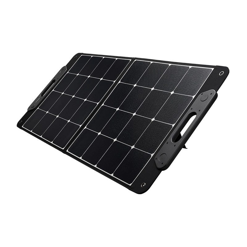 メーカー製ポータブル電源にポータブルソーラーパネルを組み合わせることで、コンセントが使えない屋外や外出先でも充電が可能です。