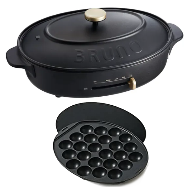 ブルーノ オーバルホットプレート BOE053 本体 プレート3種(たこ焼き/深鍋/平面) ブラック