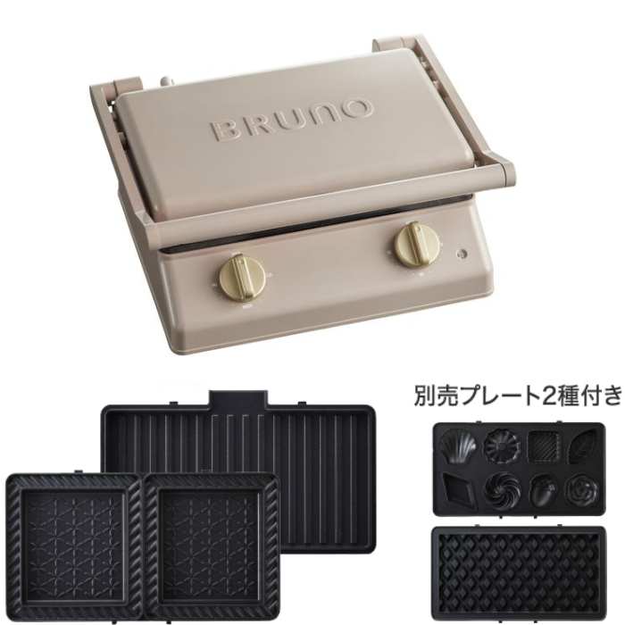 ブルーノ グリルサンドメーカー BOE084-GRG 本体(グレージュ) プレート4種(ホットサンド/グリル/ミニケーキ/ワッフル)