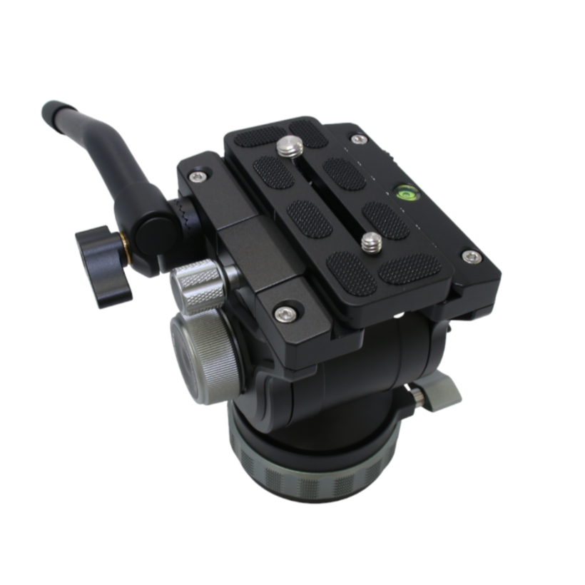 大型ビデオカメラや超望遠レンズでの撮影にも対応する耐荷重10kgのビデオ雲台。グリスとスプリングによって滑らかなチルト、パン動作が可能です。
