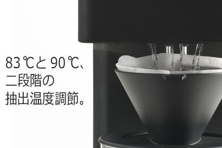 誰でも手軽に、専門店の味わいを。摩擦熱を抑えて豆の風味を損なわない低速臼式フラットミル。最適な蒸らしによって生まれる堅牢な濾過層。6ヶ所から内側に向けて斜めにお湯を注ぐシャワードリップで、ハンドドリップを再現。挽き具合は粗・中・細の3段階調整。83℃と90℃の2段階に調整できる抽出温度設定との組み合わせによって、深煎りは低め、浅煎りは高めといった具合に、自分流の楽しみ方を追求できます。