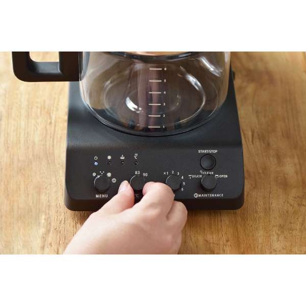 これまで培ったハンドドリップの再現技術を大容量の抽出に応用するも、開発当初のコーヒーの味は満足のいくものではありませんでした。『カフェ・バッハ』店主田口護氏監修のもと、使う豆の量に適した抽出方法を一から見直し、本製品では、豆の量が多い場合には、底面に厚みをだしたすり鉢状のろ過層が良いことに辿り着きました。そこで、1~3杯用、4~6杯用とそれぞれ最適なろ過層が形成できる2つの専用ドリッパーを開発。蒸らしに使うお湯の注ぎ方や間隔は、1~6杯それぞれに応じたプログラミングを施し、どの杯数設定でもレジェンドが認める安定したクオリティのコーヒーが楽しめるようになりました。