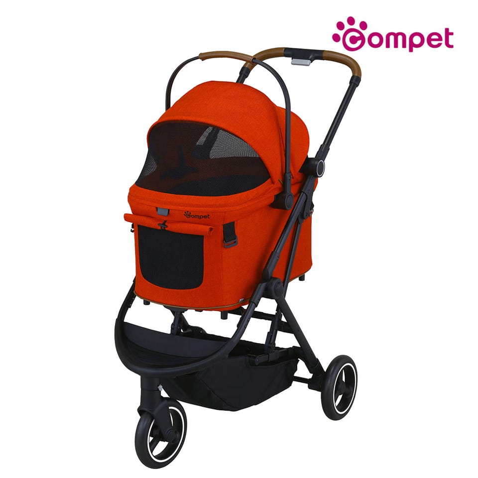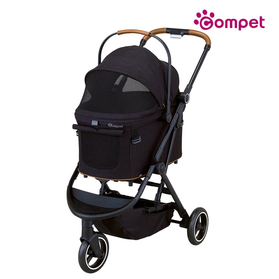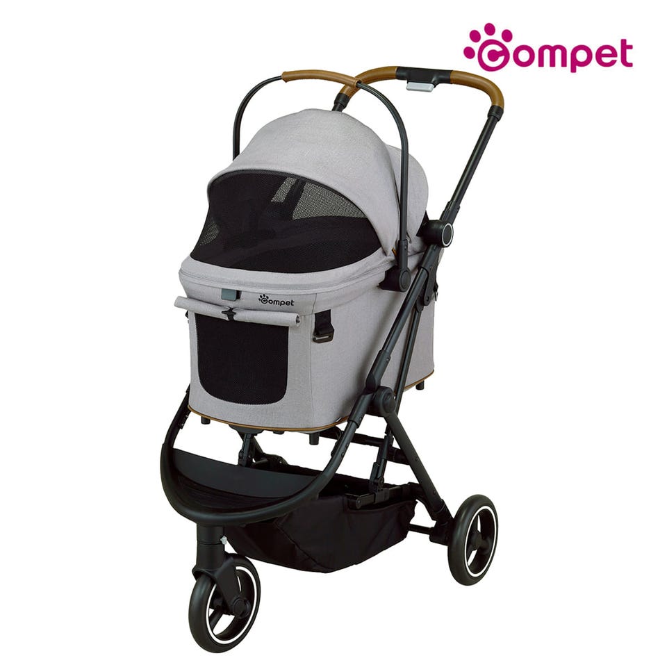 車体を折りたたむと54.3×48.5×67cm のコンパクトサイズに。車での移動時も、玄関での収納時にも場所を取りません。3輪のペットカートはどうしても大きくなりがちななか、コムペットは安全性や強度を保ちながら、収納のしやすさにまでこだわっています。