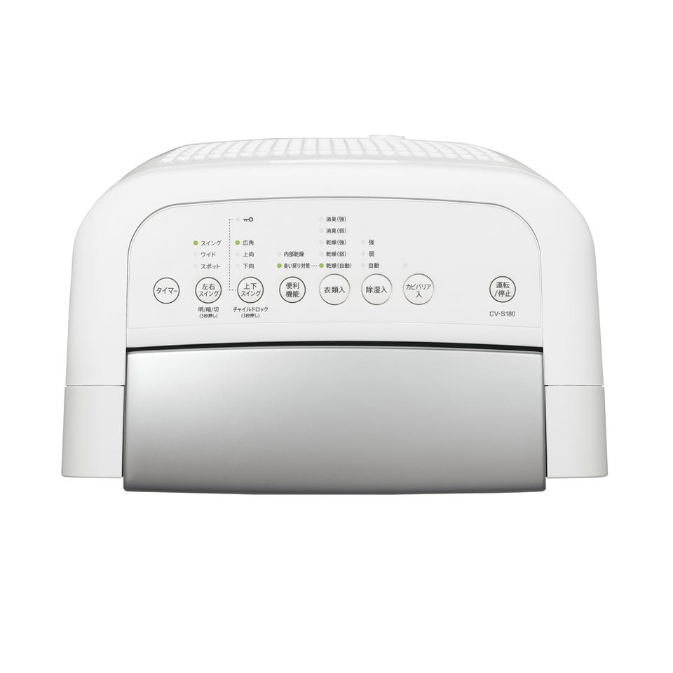 *6<臭い戻り>●試験機関:当社調べ●試験方法:部屋干し衣類の生乾きのニオイ成分がしみこんだ試験片で衣類乾燥「強」1時間運転後、「臭い戻り対策運転あり」と「運転停止」での臭気強度を6段階臭気強度表示法にて評価。■試験結果:約5時間後、「臭い戻り対策運転あり」は生乾きのニオイが再び発生するのを抑制することを確認。CV-H120(CV-S180より性能の低い機種)で実施。