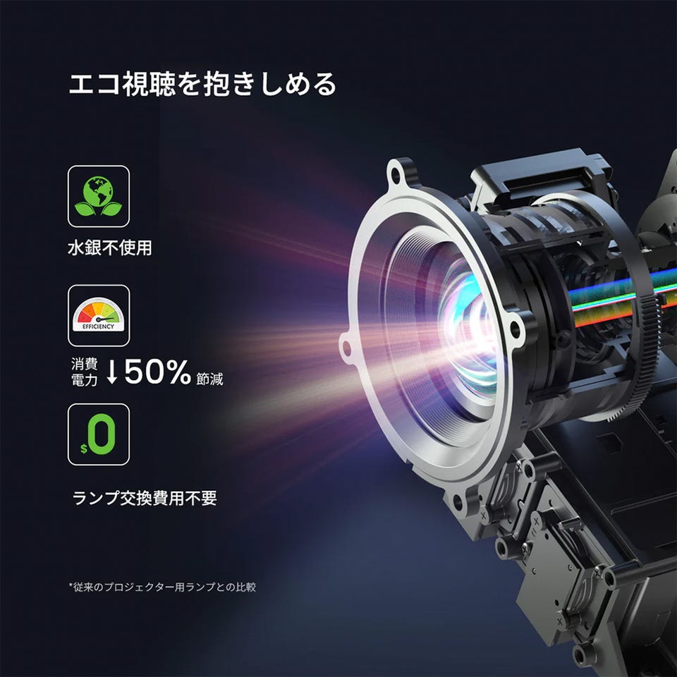 ALPDレーザーを搭載した4K、最大200インチのプロジェクターで映画を鑑賞、2450 ISOルーメンで日中でも明るく照らすことができます。