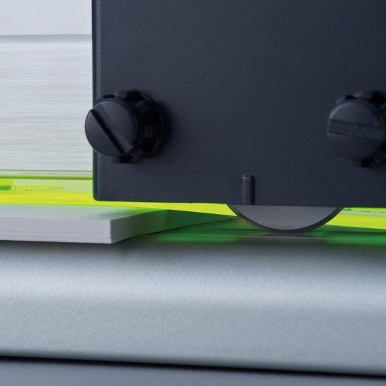 端面方向に光を放つ特性を持つ集光性アクリル板を採用したことにより、裁断位置(カットライン)が光ってわかりやすくなりました。