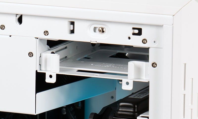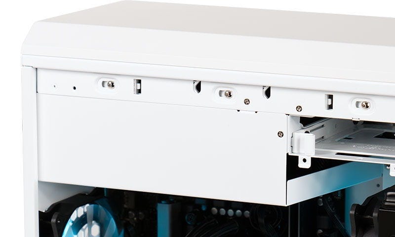 また、パソコン内部の容積を圧迫しやすいストレージベイをケース上部に集約、 ケーブルマネジメント機構を備えたケースが実現する整然としたケーブル配置でスムーズなエアフロー環境を整えました。